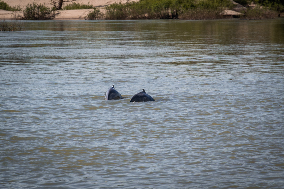 Cette fois ci, on passe par quelques rapides et ensuite on pagaie jusqu’à la prochaine étape. Cette fois, on dépose nos kayaks sur la rive, on monte dans différents bateaux et on navigue jusqu’au point d’observation des dauphins d’Irrywadie. Au même moments, on nous sert le barbecue, succulent. Les dauphins ne sont pas faciles à observer, on les voit mais ils sortent très peu de l’eau. On parvient néanmoins à les apercevoir plusieurs fois.