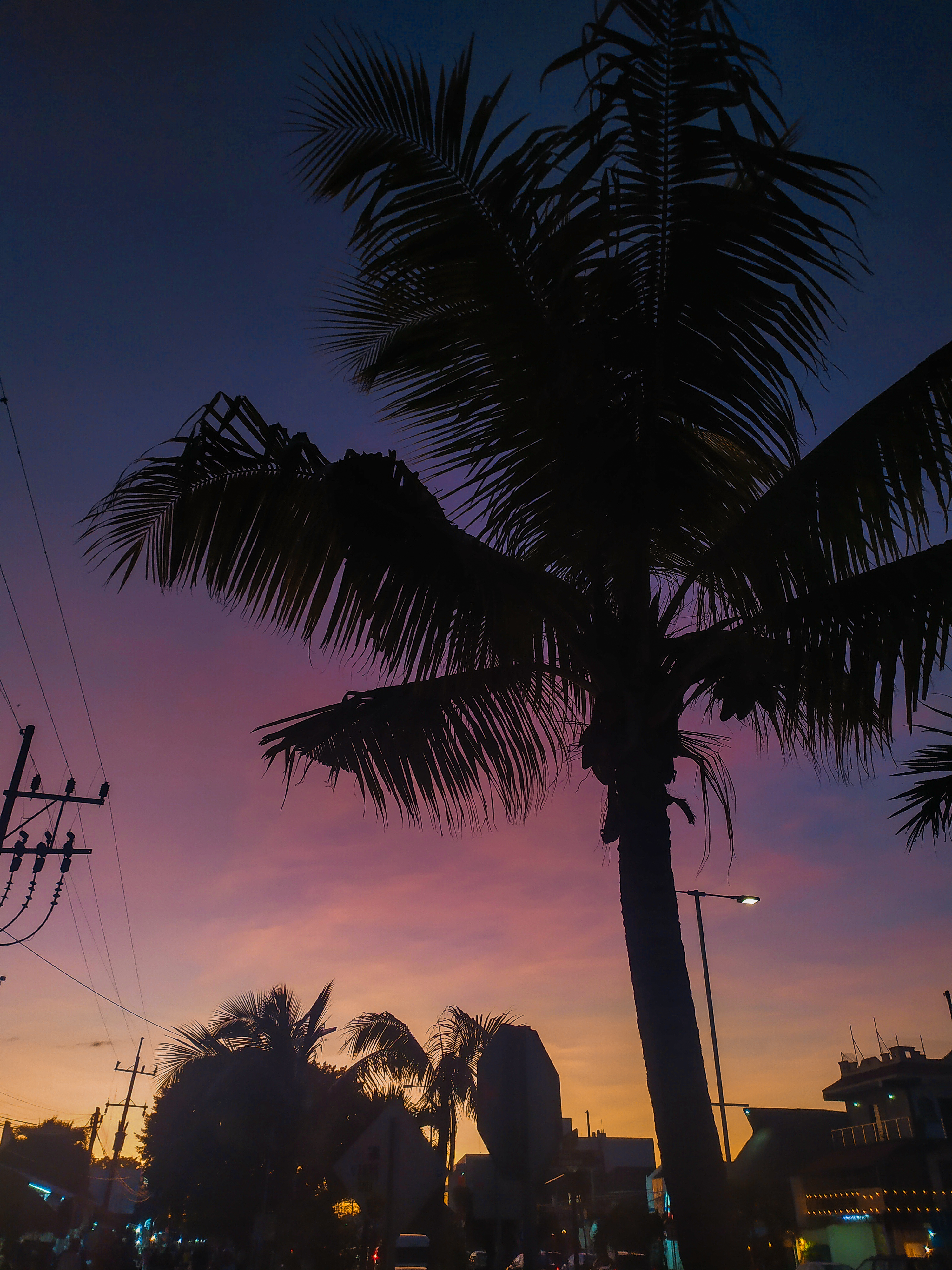 Dimanche matin, je quitte mon hostel et prend mon bus pour Tulum. Début d’aprem, je m’installe dans mon hostel et rejoins à pied la française rencontrée à Bacalar à la plage pour le coucher du soleil (enfin on est pas du bon côté mais les couleurs restent jolies). On soupe ensemble (encore des tacos) et je goûte à ma première margarita!