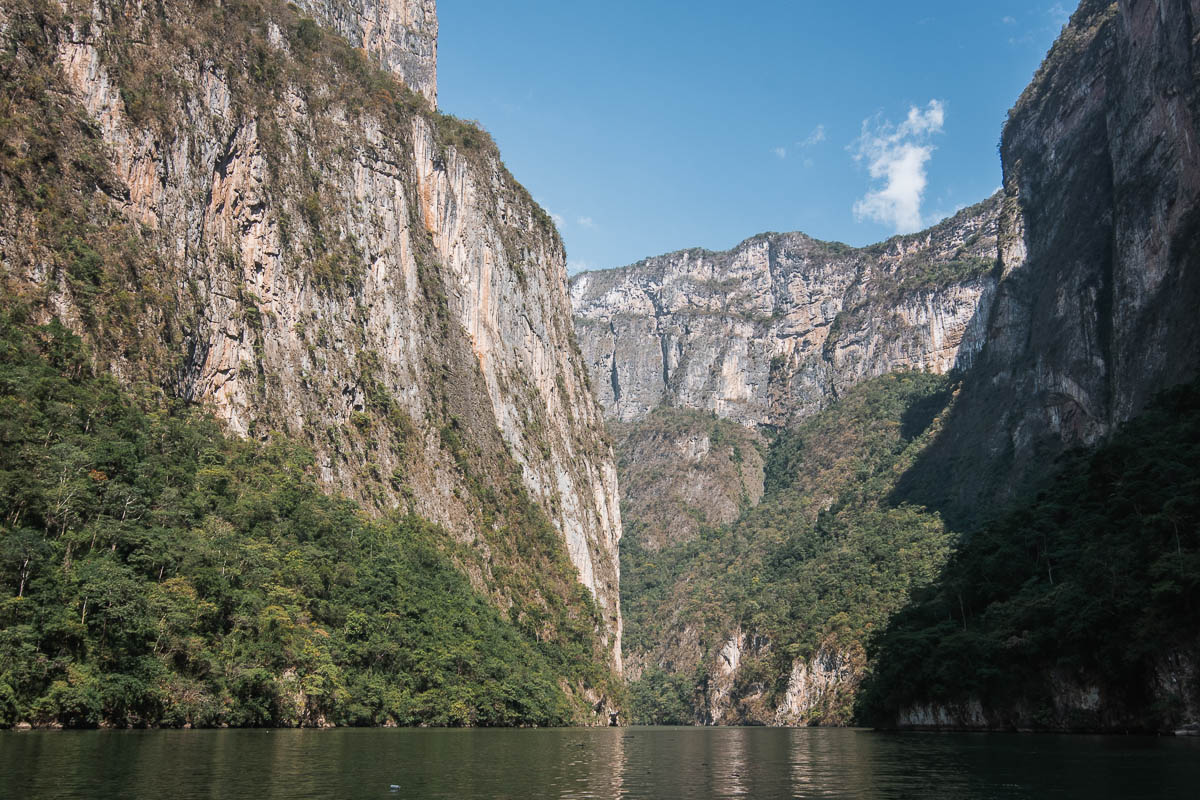 Les parois du Canyon sont gigantesques et font parfois jusqu’à 1km de haut. Avec les oiseaux qui s’envolent et le fait qu’on soit le seul bateau présent, on se croit perdu dans un autre monde. Je profite de la chaleur sur le bateau, cela fait du bien après la fraicheur de San Cristobal.