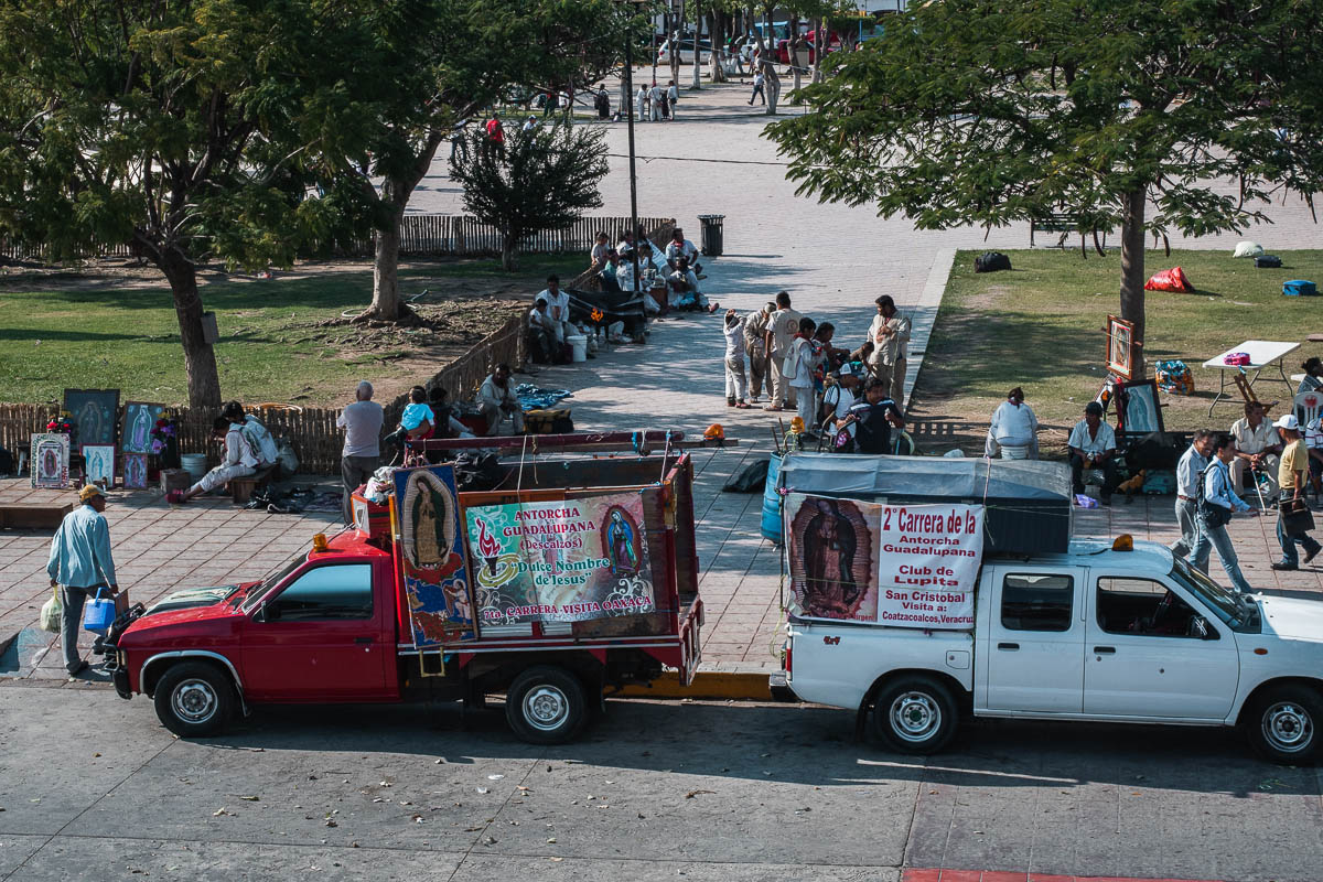 Hors de la ville, les mexicains, par groupe, courent avec un flambeau, en direction de l’église Guadalupe de la région. A l’approche du Jour J, ils remplissent les rues de San Cristobal, dormant dans leur camion (décoré avec des images de la vierge). Le jeudi 12 décembre, ils parcourent les derniers mètres avec de la musique, leur flambeau et en criant. L’église est remplie à ras bord, de personnes et de fleurs. Les mexicains qui ne courent pas sont tous sur le 31 pour se rendre à l’église. Bref cette fête a rythmé mon séjour ici et c’était assez impressionnant de voir la ferveur de tous les locaux.