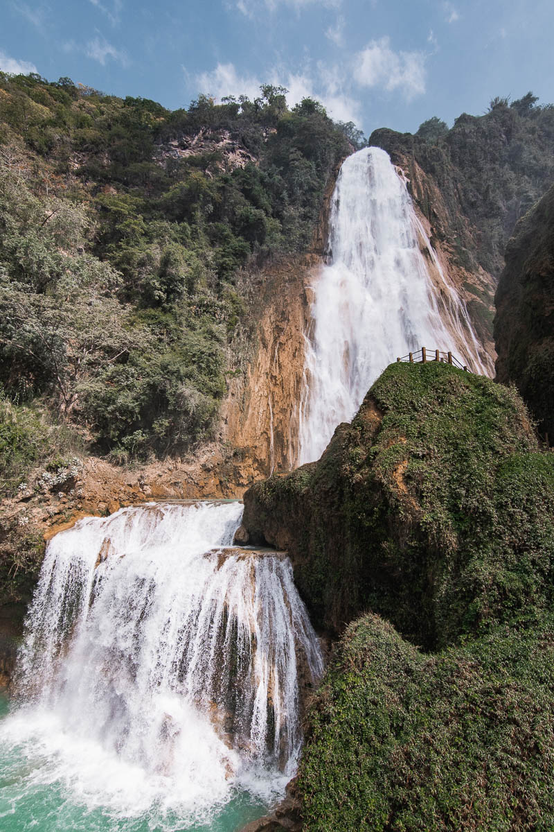 Vendredi, je fais un autre tour et je me rends aux cascades El Chiflon. Tout au sommet, il y a le « Voile de la mariée », une énorme cascade. On peut s’approcher assez prêt et je prends presque ma douche.