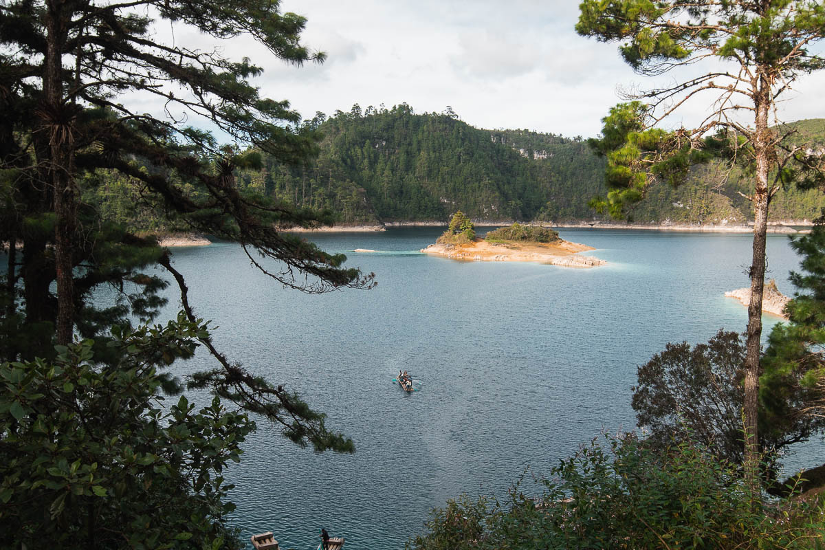 On se rend ensuite aux lacs de Montebello, une région parsemée de lacs. On en voit 5 en tout, dont un qui est séparé en deux par la frontière avec le Guatemala. D’ailleurs, on a l’occasion de se rendre au Guatemala pour quelques mètres.