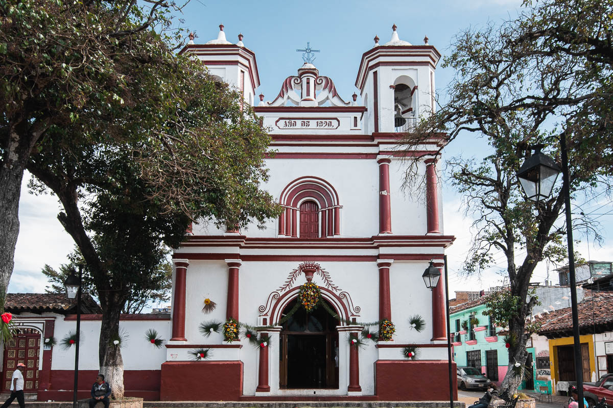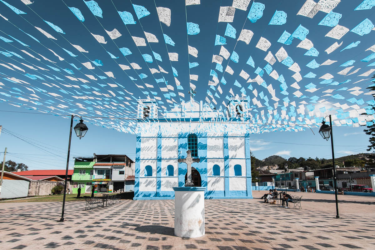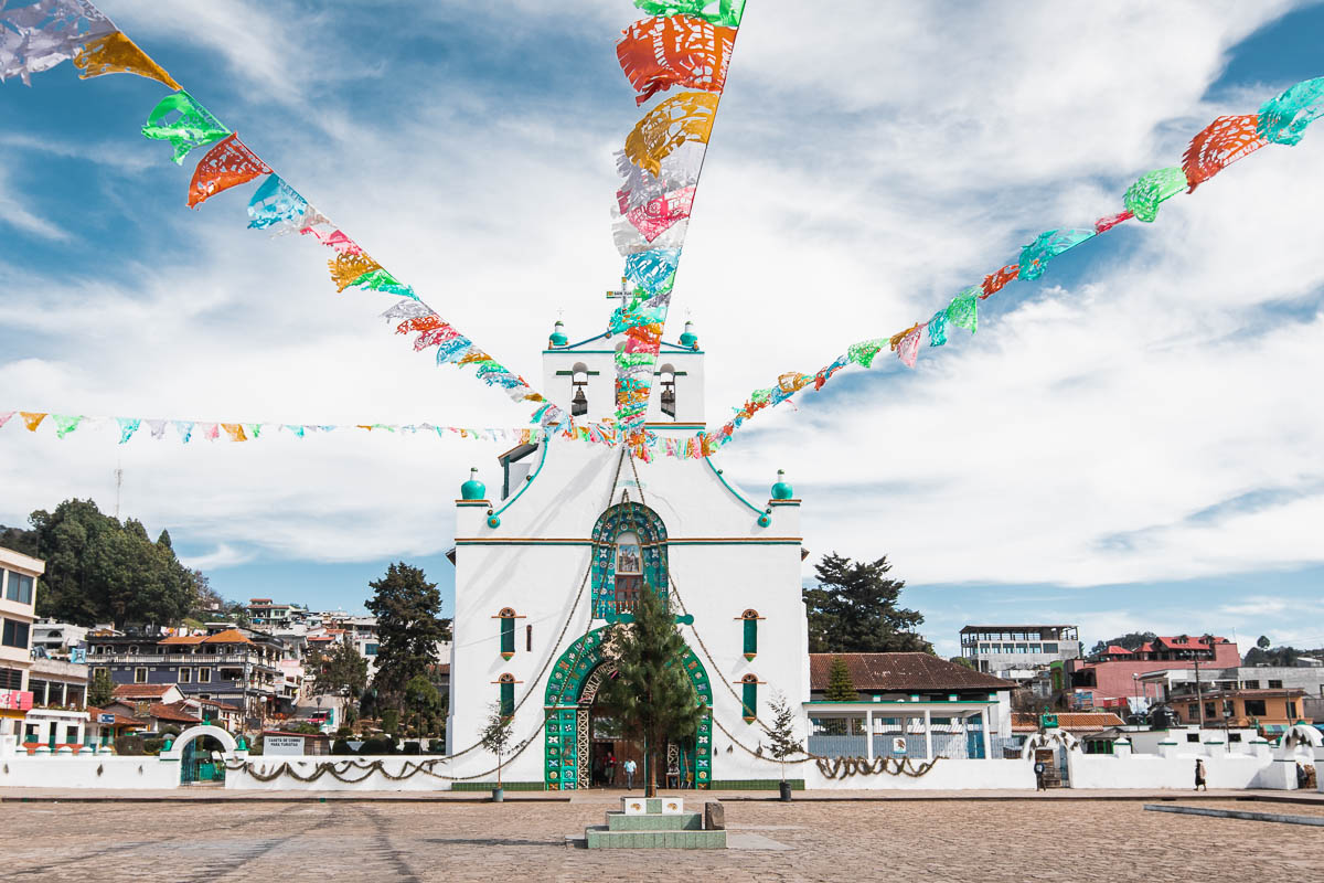 De retour à San Cristobal je fais un tour de toutes les églises que j’ai repérés pendant la semaine. Elles ont toutes des couleurs différentes et des guirlandes devant. En arrivant à la dernière, je vois que c’est la fin d’un mariage et toute la suite s’en va dans la rue en chantant et dansant, suivi de mariachis.
