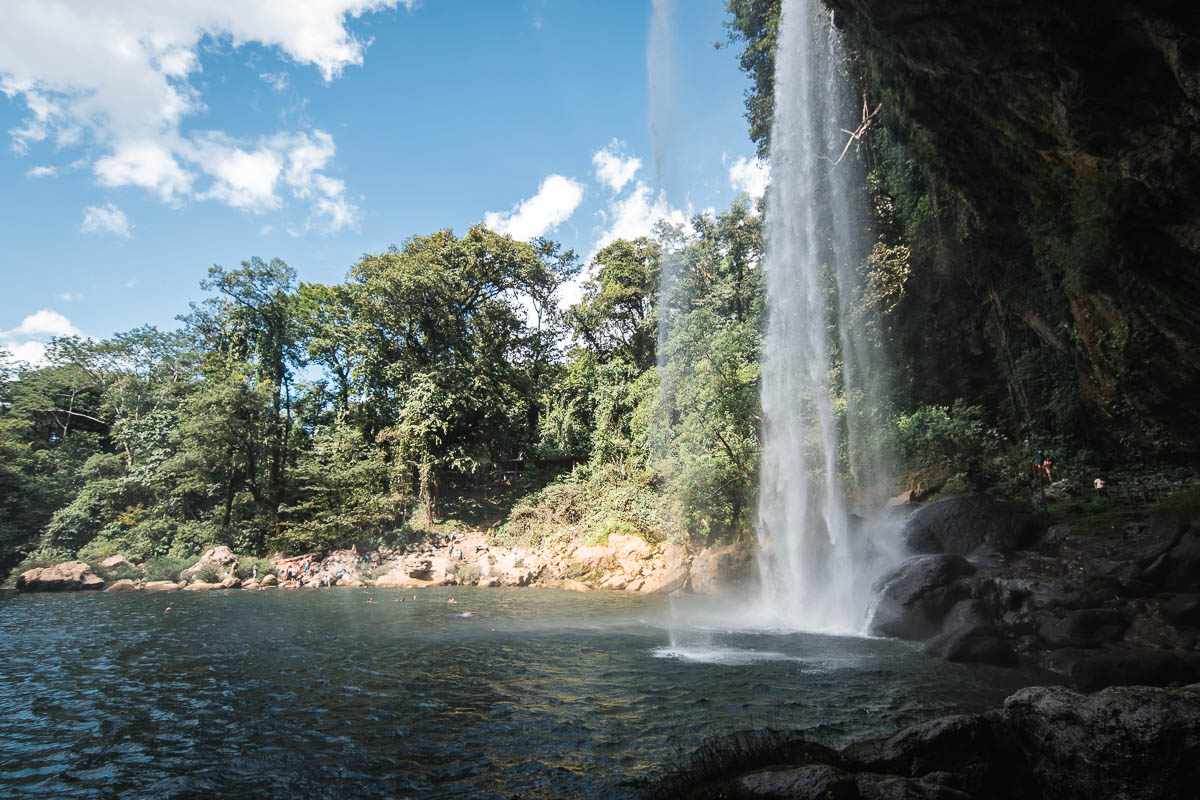 Le vendredi, on prend toutes les 3 un tour pour aller à San Cristobal de Las Casas, dans les montagnes. Le tour nous fait passer par deux cascades. La première est Misol-Ha. On peut passer derrière la chute d’eau. On n’a que 30 minutes sur place donc on ne se baigne pas.
