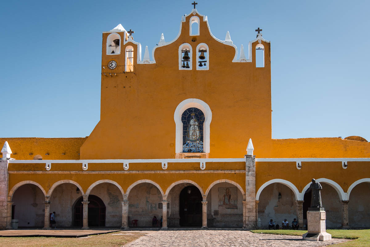 Mardi, je m’active. Je prends un colectivo fin de matinée pour Izamal, une petite ville à 1h de Mérida connue pour sa couleur. En effet, toutes les maisons sont jaunes. Il n’y a pas d’explication officiel à ce choix de couleur. La ville a été construite sur d’anciens temples mayas dont un qui était dédié au soleil. Certains disent que pour continuer à honorer le soleil, ils ont tout peint en jaune. D’autres disent que c’est juste un coup de marketing. Mais peu importe la raison, l’ensemble est très joli. Bref, je commence par le monastère tout jaune, dont l’atrium est le second plus grand en taille après celui du Vatican.