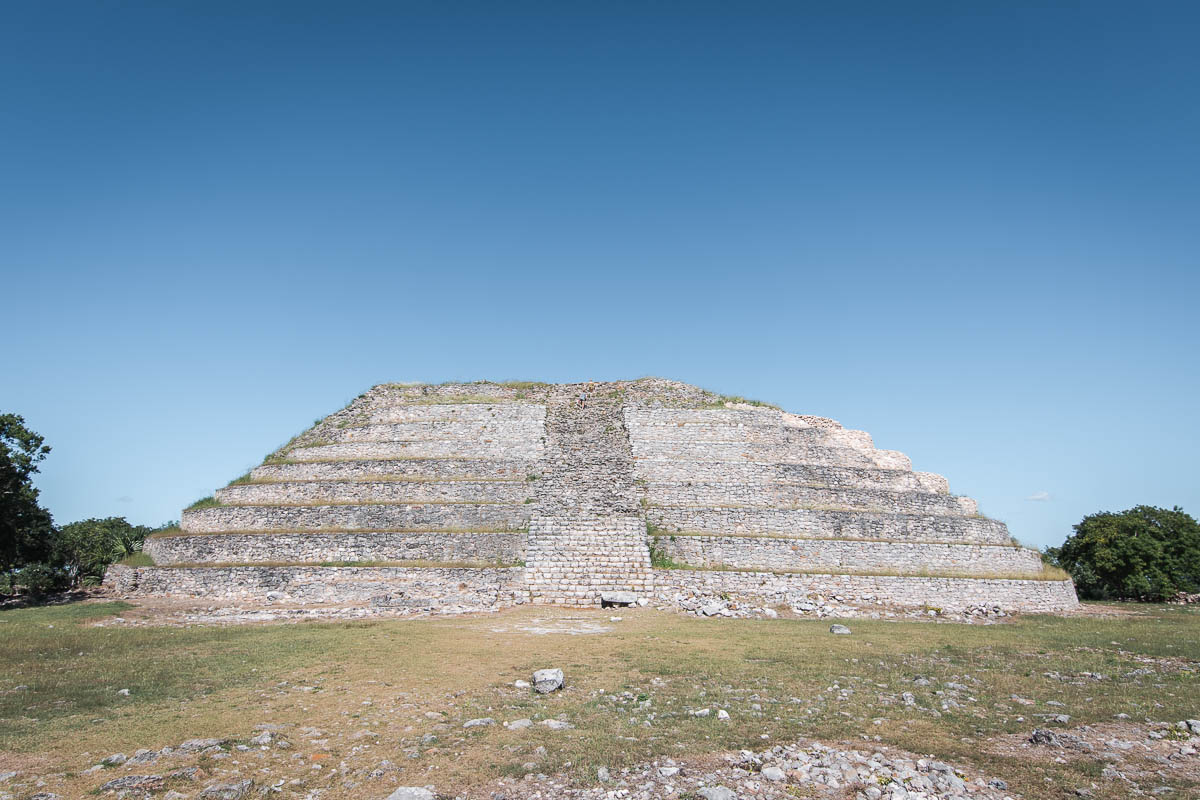 Ensuite je grimpe sur les vestiges des pyramides mayas. Depuis le haut du deuxième temple, j’ai une vue sur toute la ville et la jungle environnante.