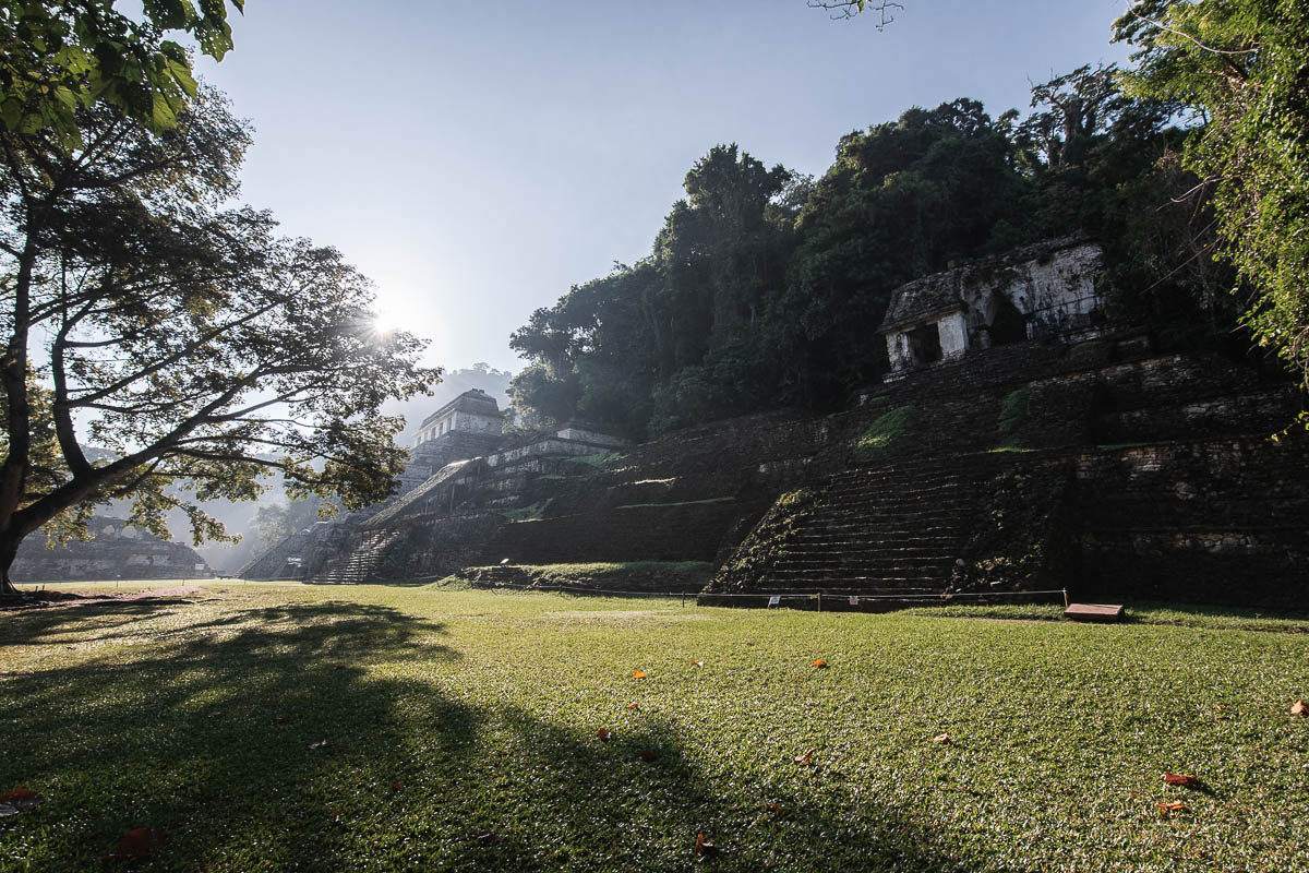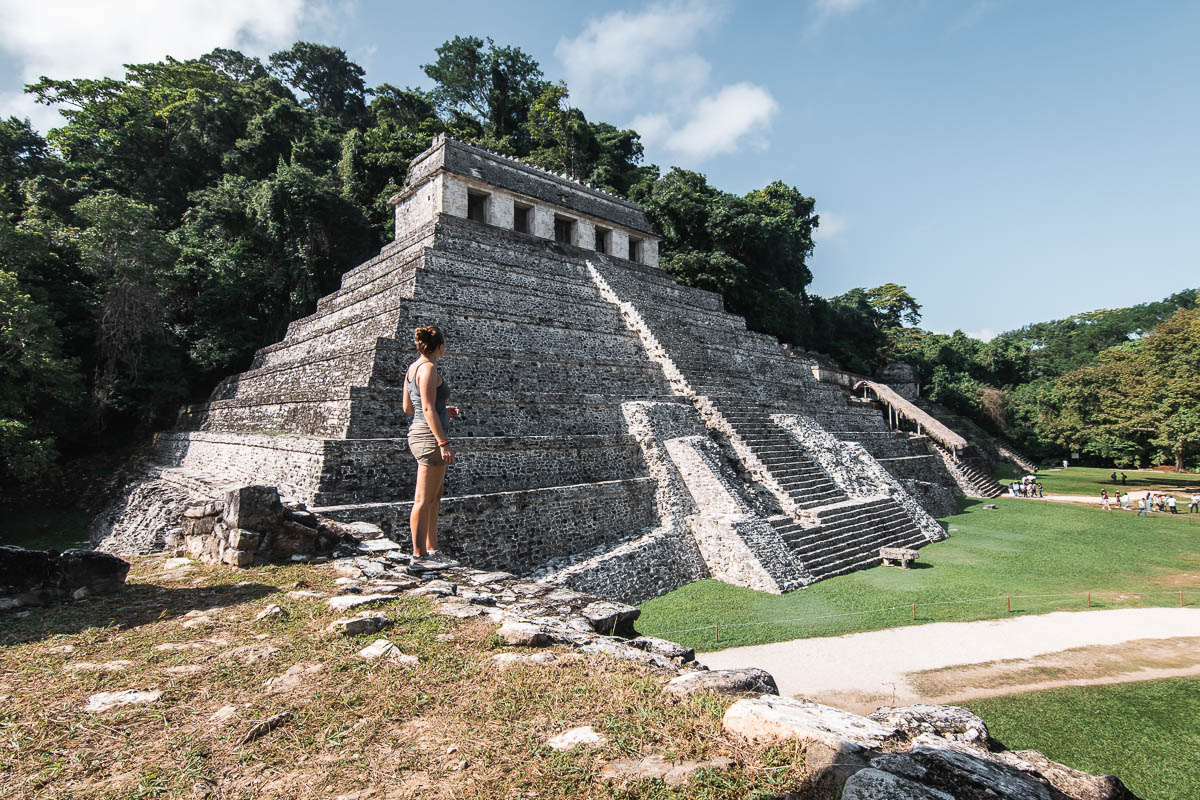 Étonnamment, je dors comme une marmotte dans le bus et j’arrive très rapidement à Palenque, le point de départ pour visiter les ruines homonymes et différentes cascades. La ville se situe juste avant les montagnes du Chiapas et est entourée par la jungle. Etant donné que j’arrive à 7h du matin, je dépose mes affaires dans mon auberge et je prends le premier colectivo pour les ruines. Le site ouvre à 8h et je suis la première sur le site (si on ne compte pas les vendeurs de souvenirs). Les temples sont complètement entourés par la jungle et très bien conservés. Il est possible de grimper sur certains. Je fais le tour de tout le site et puis je descend le long des cascades jusqu’au musée.