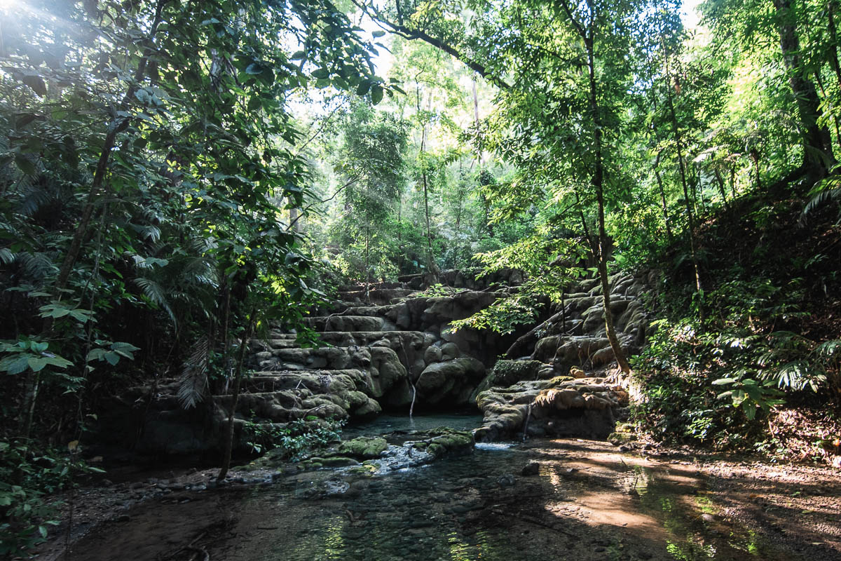 Le lendemain, au moment de partir avec un hollandaise pour aller voir des cascades, je retombe sur Zoe, une anglaise que j’avais rencontré à Holbox. Elle vient d’arriver et je lui propose de se joindre à nous. 10 minutes plus tard, on est dans un colectivo pour Roberto Barrios, des cascades pas trop touristiques, constituées de cinq bassins où l’on peut nager. On y passe l’après-midi à se baigner et à sauter depuis les cascades. Le soir on retourne en colectivo à Palenque.
