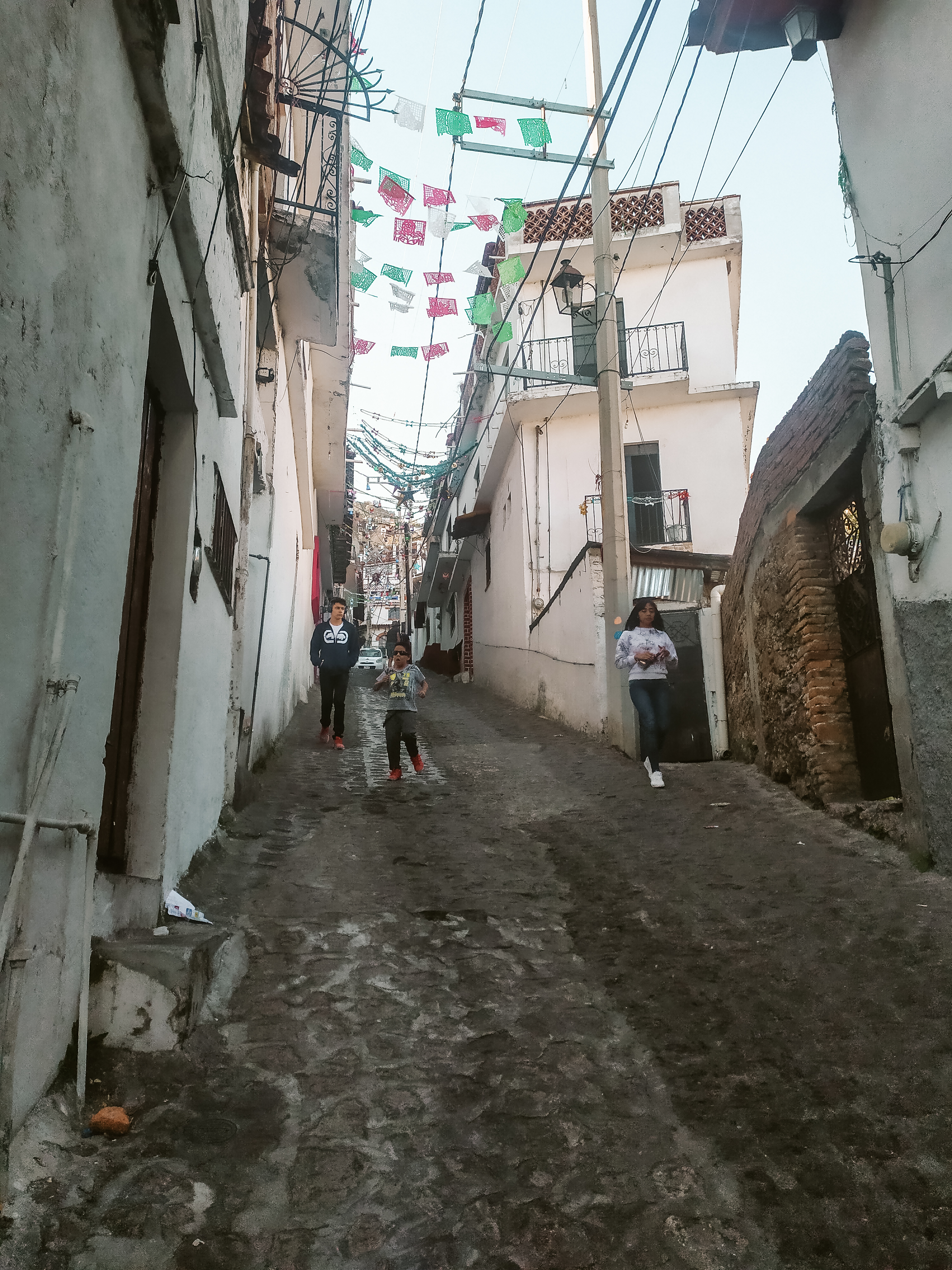 Le lendemain, je me balade dans les rues de Taxco après un petit déjeuner piquant (j’avais oublié que les chilaquiles venaient avec une sauce spicy…).  Toutes les maisons de Taxco sont blanches, l’ensemble est très joli. Ne sachant pas trop où aller, je répère les différentes églises et je fais le tour. A un moment, un mexicain me demande d’où je viens. Quand il apprend que je suis belge, il est tout content car je suis la première belge qu’il rencontre. Une selfie plus tard, je repars.