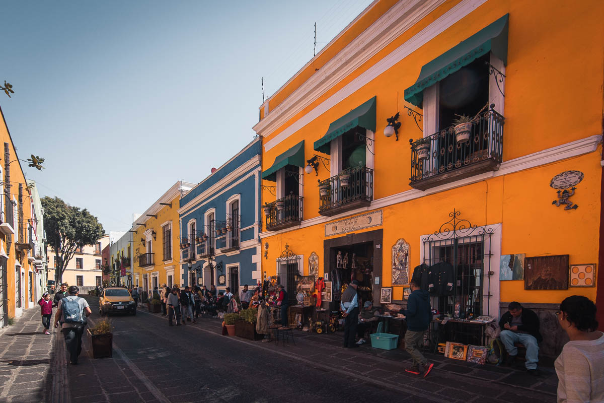 Le lendemain, je fais le Free walking tour et on découvre la ville. D’abord la cathédrale qui est super grande. Elle devait de base être construite à Mexico city, mais vu que le sol n’était pas assez solide là bas, ils ont décidé de la construire à Puebla. On parcourt les différentes rues colorées. Comme c’est dimanche il y a plein de petits marchés, d’antiquaires et d’artistes qui exposent. L’ambiance est très agréable. Une grande partie des façades des maisons sont revêtues de Talavera, une sorte de céramique de la région.