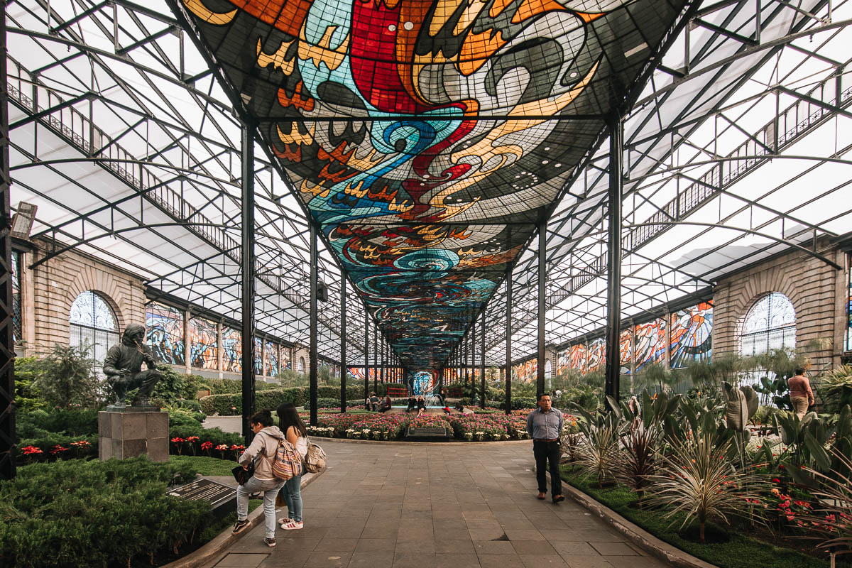 Bref j’arrive le vendredi 10 janvier en fin d’après midi à Toluca, depuis Taxco. Ici il n’y pas beaucoup de touristes, je ne croise pas grand monde et mon auberge est quasi vide. Après avoir lu dans un blog que Toluca a un superbe jardin botanique, je décide de voir cela de mes propres yeux (et l’entrée coûte 50 centimes, ca vaut la peine). Et en effet, le jardin est magnifique. En fait toutes les fenetres du batiments sont des vitraux, ce qui donne un effet très coloré. Le jardin est composée de plusieurs parties (une avec les cactus, une partie japonaise…) et c’est un plaisir de s’y balader. L’ensemble est vraiment joli!