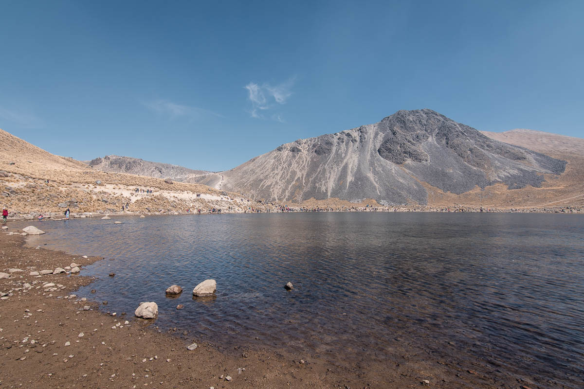 Moi qui adore les volcans, j’attendais celui de Toluca avec impatience. Le Nevado de Toluca n’est plus en activité depuis longtemps, mais l’excursion vaut néanmoins la peine. Aujourd’hui, deux lagunes se partagent le cratère et en hiver il n’est pas rare de voir de la neige recouvrir les parois du volcan. Lors de ma visite, il en restait un tout petit peu (une semaine plus tard, il neigeait…). Le point le plus haut du volcan se trouve à plus de 4700 mètres. La nuit il y fait -10° et la journée jusqu’à 9 degrés. C’est l’occasion de sortir ma veste!
