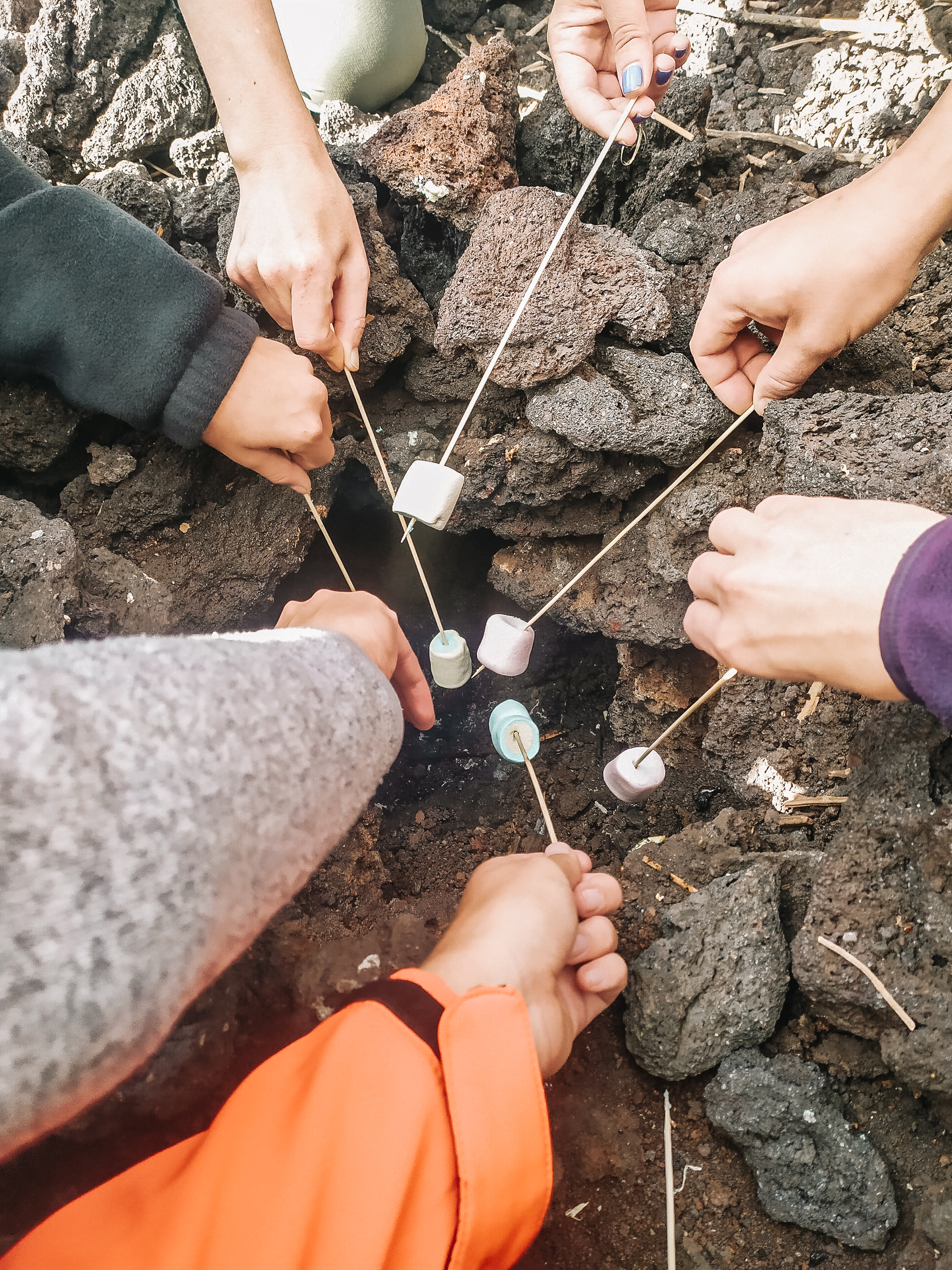 Ensuite les guides nous donnent des marshmallows et on les fait fondre grâce au soufre qui s’échappe depuis un trou.
