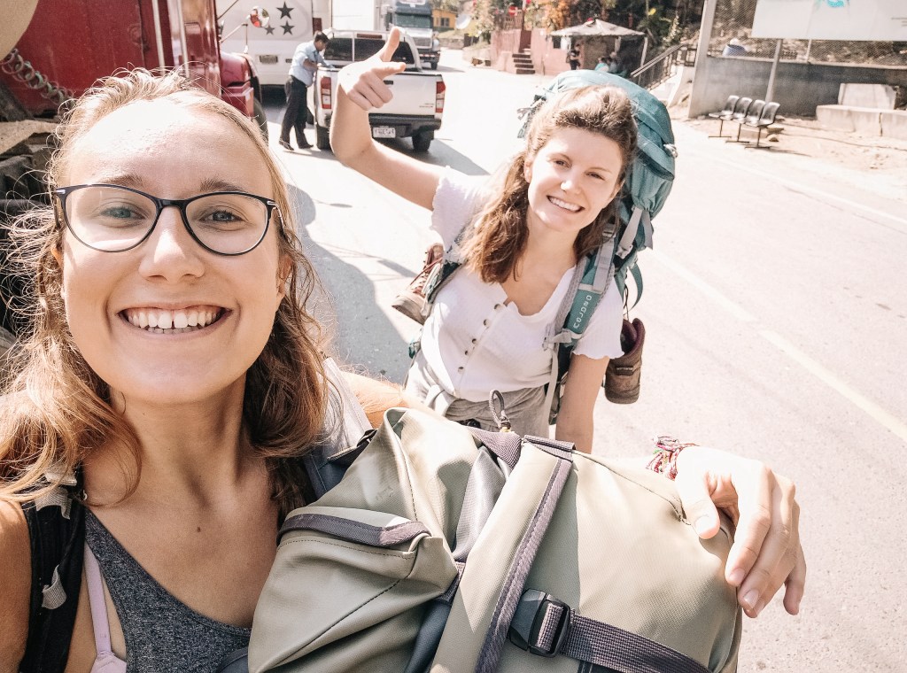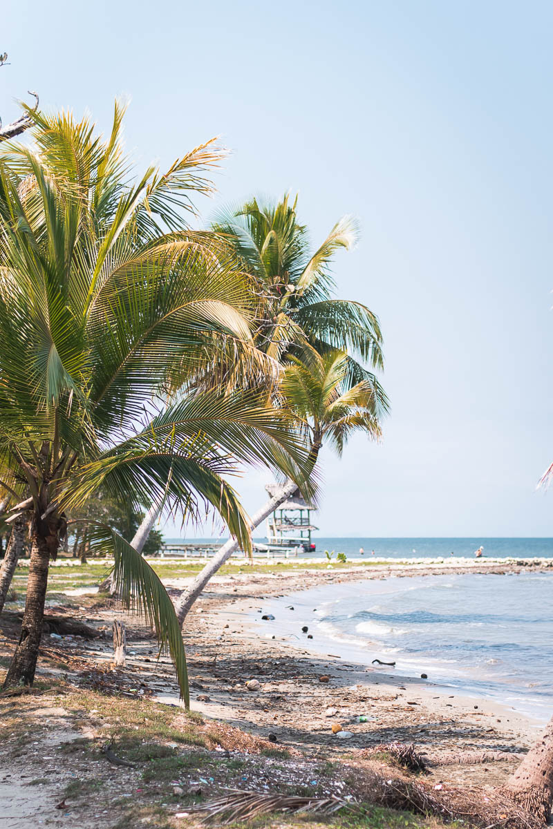 Mardi, on veut aller à Livingston. Il y a des navettes qui font le trajet jusque Puerto Barrios (la ville depuis laquelle il faut prendre un bateau pour Livingston) mais elles coûtent 45$ ! Après quelques recherches internet, je vois qu’il est possible de le faire avec les bus locaux. Du coup, on commence par un premier mini van jusqu’à la frontière, on traverse cette dernière à pied et puis on prend un bus jusque Chiquimula (qui fait 50km en 2h…). A peine arrivées à Chiquimula, tout le monde vient nous demander quelle est notre direction. On embarque en deux secondes sur un autre bus pour Puerto Barrios. C’est rapide ! C’est la partie la plus longue du trajet, on met presque 5h. Le bus fait du bruit, les vendeuses montent à chaque arrêt, un local crie: Puerto Puerto Puerto Baaaarrios toutes les 5 minutes, cela fait un de ces vacarmes mais devinez qui dort comme une marmotte ? Colféo ! Bref une fois à Puerto Barrios, le chauffeur nous indique l’embarcadère pour prendre le bateau et 30 minutes plus tard on arrive à Livingston.
