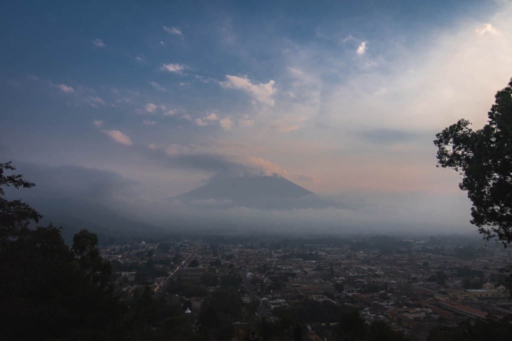 On finit par le Cerro de la Cruz, une colline depuis laquelle on a une vue sur toute la ville. Malheureusement il fait nuageux et on ne voit pas très bien le volcan en face.