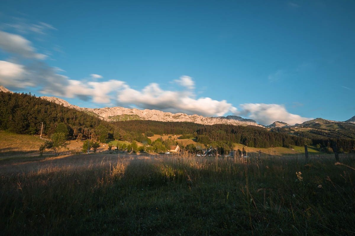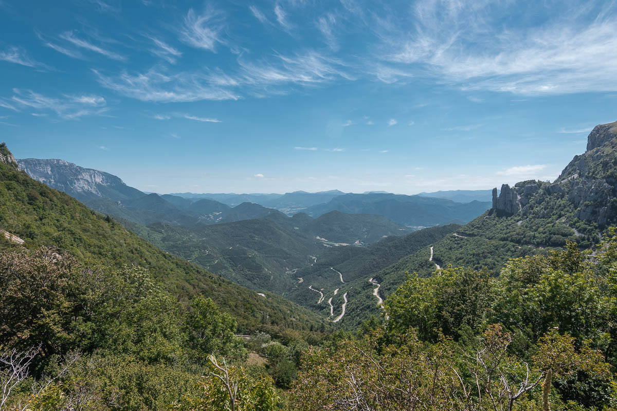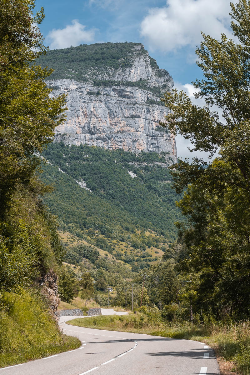 Je roule jusqu’à la ville de Die connue pour sa clairette, avant de remonter vers le nord, mais cette fois de l’autre côté de la chaîne de montagne. Je comptais me balader dans le cirque d’Archiane mais une fois dans le village, il n’y a qu’un seul parking qui est surveillé. Il est interdit d’y stationner après 18h et il est déjà 16h, la randonnée prend 3h et je n’ai pas envie d’avoir des ennuis. Du coup je fais demi tour (après une ou deux photos).