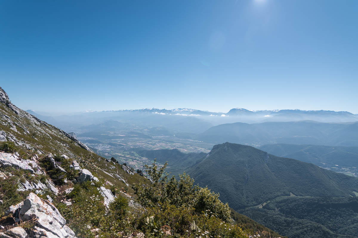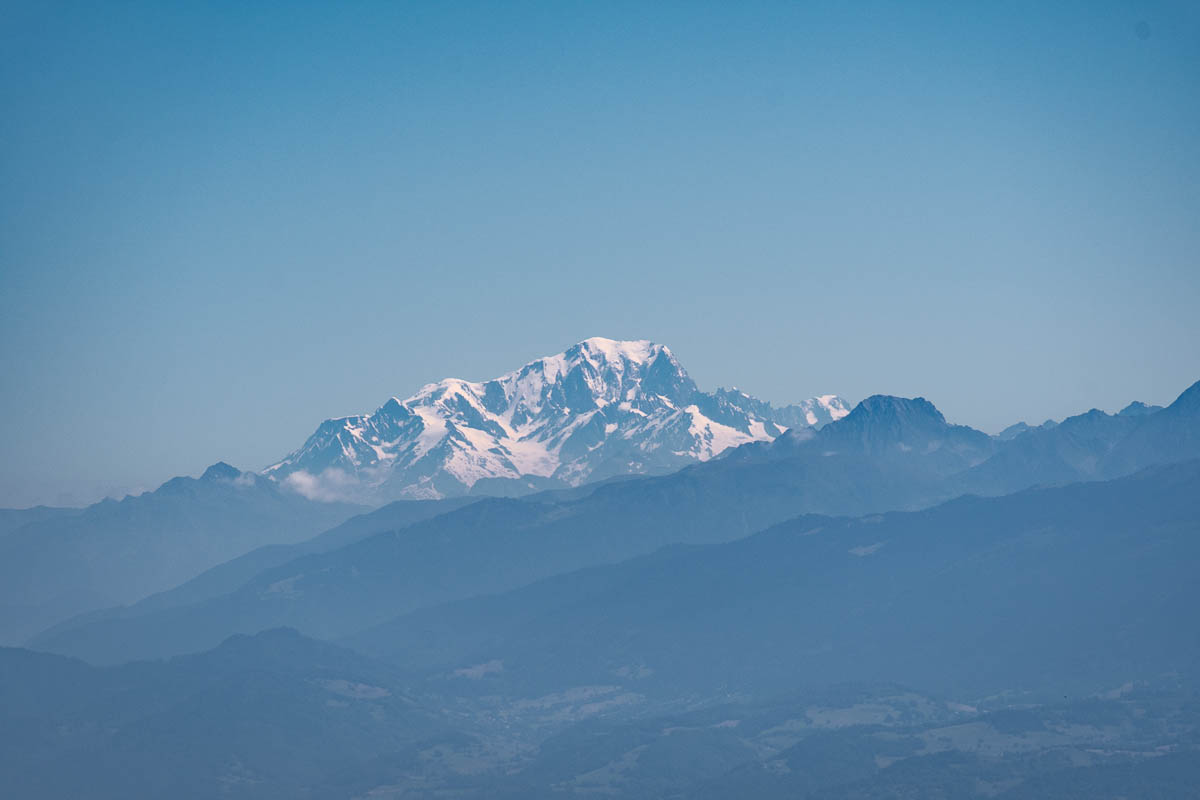 Je continue le chemin et je me rends compte que je dois passer par la prairie des vaches. Avec leur anneau à piques dans le nez, elles me font un peu peur et je ne suis pas fort à mon aise en passant à côté d’elles. Mais le chemin commence à monter et donc je m’en éloigne assez rapidement. Le sentier grimpe en zigzag dans la forêt, je me demande quelle idée j’ai eu d’aller à la montagne, surtout quand je vois que la dernière montée est raide. Mais une fois que j’arrive au col, tout est oublié, j’ai une vue sur tous les alentours, le Mont Blanc et la ville de Grenoble.