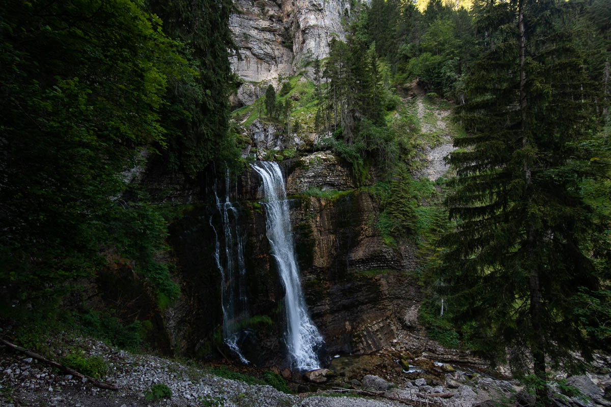 En repartant, je vois plein de familles arriver! Heureusement que j’étais là tôt. Je reprends donc la voiture, je quitte le massif de Chartreuse, je contourne Chambéry et je remonte dans le massif des Bauges. Là je m’arrête à la cascade du Pissieu et je me baigne. L’eau est glaciale car elle provient de la fonte des neiges. L’endroit est très joli mais il y a pas mal de monde donc je ne traîne pas. Je continue ma route vers le col de Semnoz. Je fais vite quelques photos mais la pluie arrive donc je quitte le massif et je me gare le long du Rhône car ils annoncent des orages. Heureusement, mis à part un peu de pluie et quelques éclairs, rien de très grave.