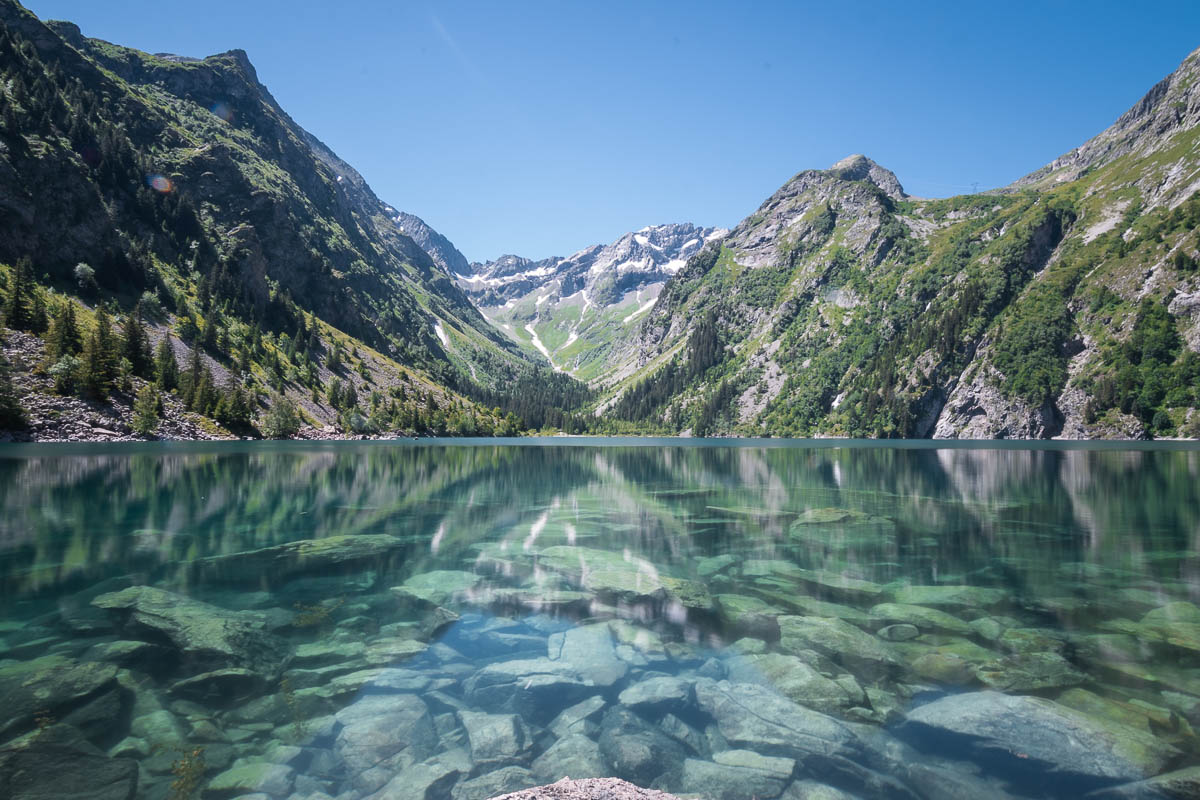 Jeudi, à nouveau réveillé tôt (6h30 cette fois), je prends la direction du massif des écrins. J’ai repéré un très beau lac mais il a l’air assez fréquenté. Heureusement, j’arrive tôt donc je me gare facilement dans le hameau au pied du départ de la randonnée pour le lac du Lauvitel. Une fois de plus cela grimpe bien (563m de dénivelé positif) mais une fois en haut le lac est splendide. L’eau est transparente, dans des tons turquoises et verts. Il y a quand même un peu de monde mais quand je vois toutes les personnes qui monte, je suis contente d’être venue tôt.