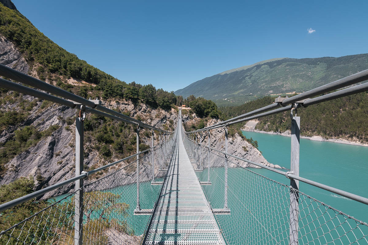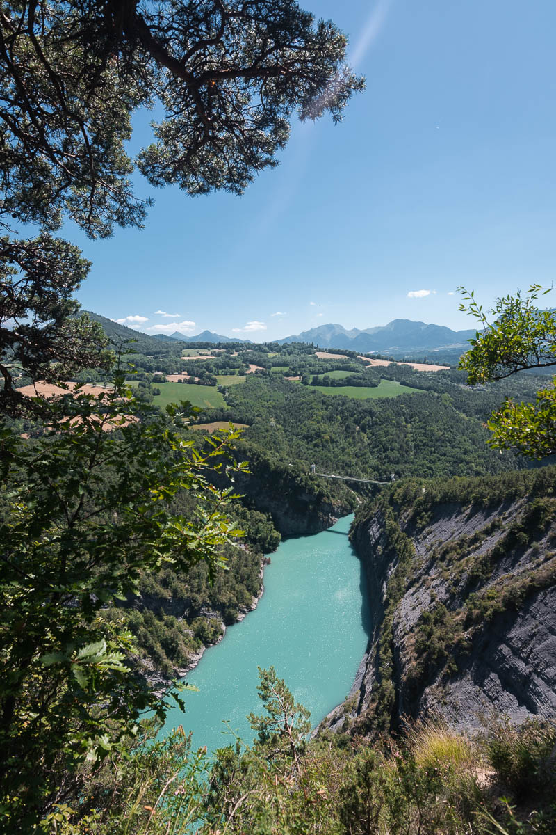 Après une pause snack, je descends mais ce n’est pas évident, les cailloux glissent. J’arrive tant bien que mal à ma voiture et je reprends la route. Je quitte le massif du Vercors et je roule jusqu’au lac Monteynard-Avignonet dont il est possible de faire le tour grâce aux grandes passerelles qu’ils ont installé. Je trouve un spot pour passer la nuit sur park4night, pas facile d’accès mais la vue en vaut la peine et il n’y a pas un chat!