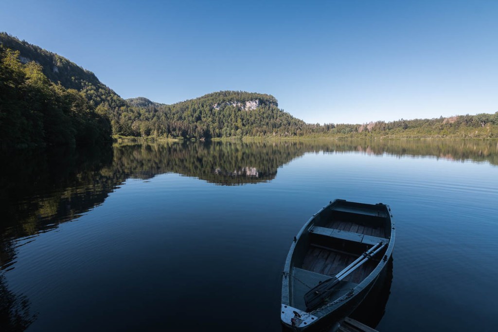 Dimanche matin, pour une fois, je me réveille tard. Je n’avais pas mis de réveil, ne pensant pas en avoir besoin. Moi qui comptait démarrer tôt pour éviter les touristes du dimanche, c’est raté. Mais ça fait du bien. Après le déjeuner, je descend près du lac de Bonlieu, il fait très calme, il n’y a que quelques pécheurs sur place.