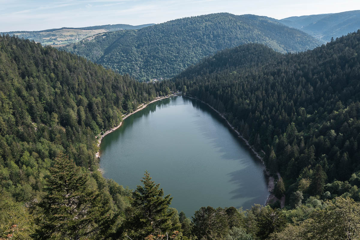 Lundi matin, je suis de nouveau réveillée tôt mais je ne le regrette pas vu que mardi c’est la fête nationale française, ils sont tous en long week-end et donc il y a du monde partout. Je roule jusqu’au lac des Corbeaux et je grimpe jusqu’au point de vue. Il n’est encore que 8h donc j’ai le lac rien que pour moi!