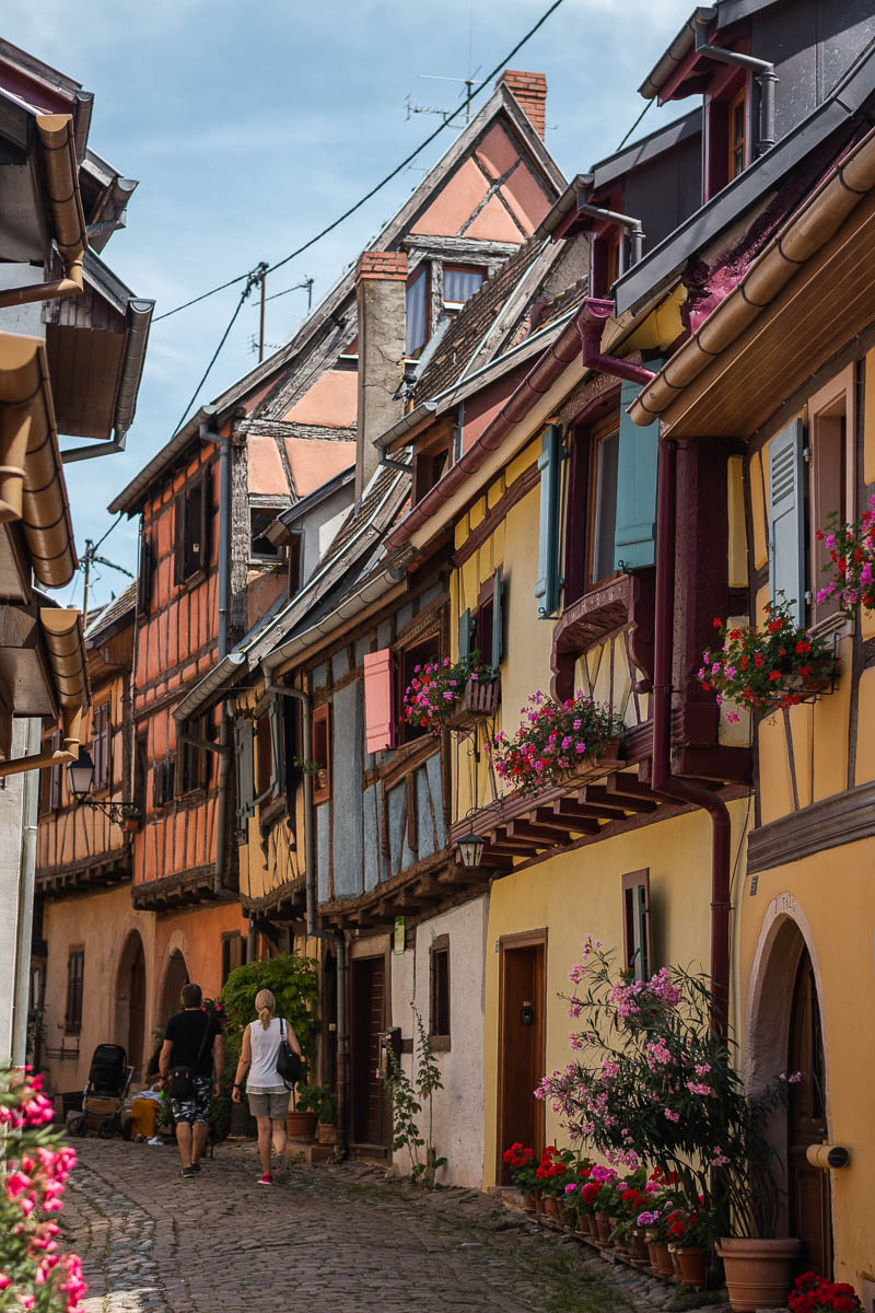 En haut, je rencontre un français qui me renseigne un bon spot pour camper avec une vue sur la vallée. Je comptais dormir près de Colmar pour y aller en fin de journée ou tôt le lendemain matin. Mais au vu du monde qu’il y a partout, j’avance dans les Vosges beaucoup plus vite que prévu car je zappe pas mal de point de vue quand je vois les voitures qui débordent des parkings. Donc je me balade sur la route des crêtes et puis je descends vers l’est, parmi les vignes et les villages alsaciens (Eguisheim et Kaysersberg).