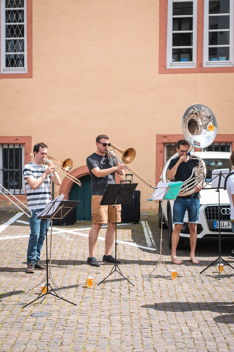 Une fois notre ventre rempli, on prend la direction de Bad Münstereifel, une cité médiévale, connue pour son city outlet, ce qui explique les rues remplies de gens, les bras chargés de sacs. En se baladant, on apercoit un orchestre au loin et quand Lauranne reconnait les Spice Girls, on se rapproche pour les écouter. C’est un groupe de 15 mecs, tous une bière à leur pied, leur musique est entraînante et on reste quelques minutes à les écouter.