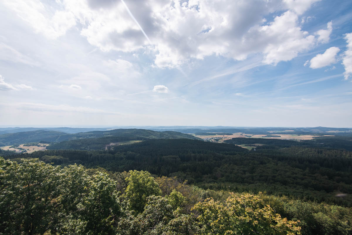 Dimanche matin, on commence la journée par une petite marche, on grimpe au plus haut point de l’Eifel, Hohe Acht.