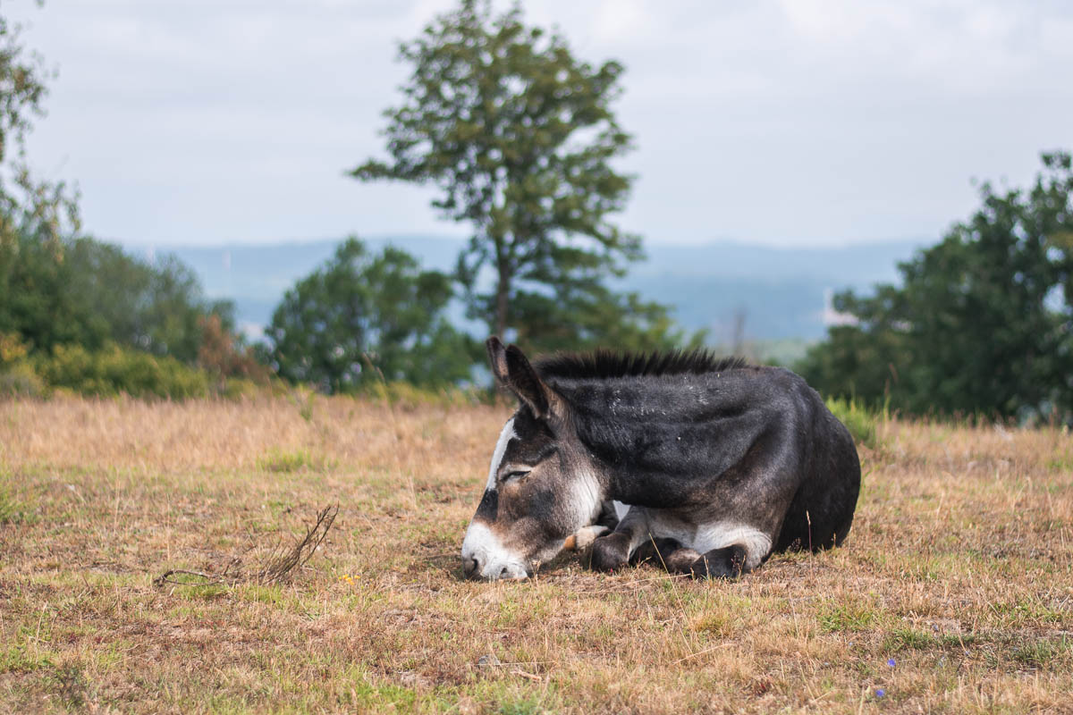 Lundi matin, lorsqu’on se réveille il ne fait pas très beau mais heureusement le soleil montre vite le bout de son nez. On fait le tour des deux lacs, le Gemündener maar et le Schalkenmehrener Maar. On croise quelques ânes en chemin.