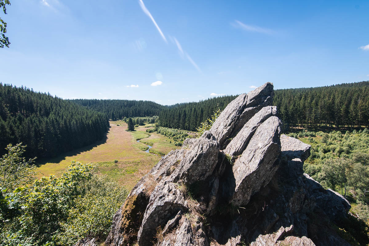 Mardi matin, on traîne un peu au lit, puis on redescend vers la Moselle et on achète du vin dans un petit village. On prend la direction du retour mais avant on fait un dernier spot, qui est en Belgique mais pour y accéder il faut passer par l’Allemagne. On fait une petite promenade jusqu’au rocher de Bieley, le plus haut rocher de Wallonie, qui a une très belle vue sur la vallée de la Schwalm. Attention pour y aller, il faut longer un bois où il y a des exercices de tirs militaires et il est interdit d’y passer certain jours! Heureusement pour nous, on peut y aller sans risquer notre peau.