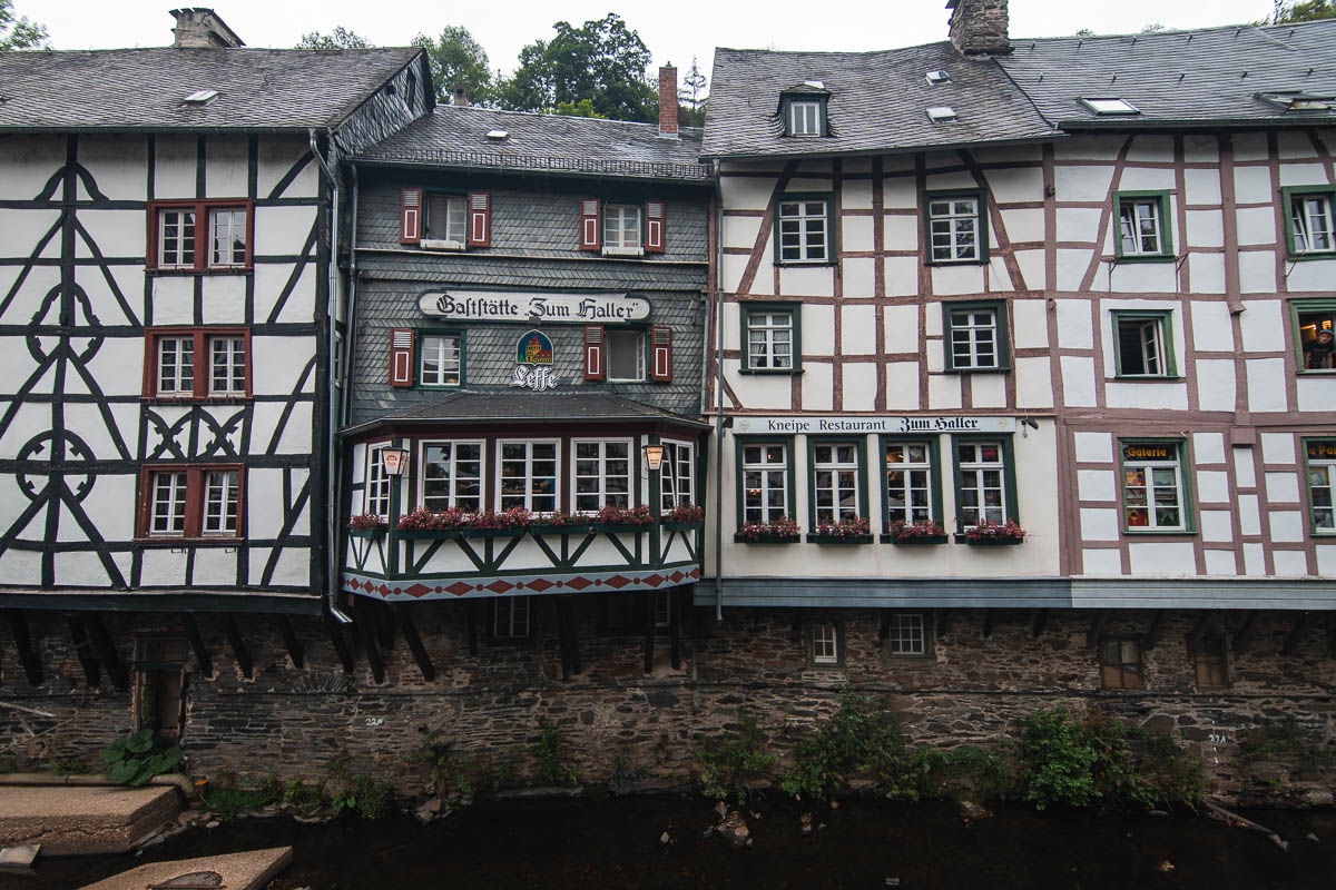 Bref, vendredi 17 juillet, une fois la voiture chargée, on part en fin d’après midi pour Monschau, une jolie ville située juste après la frontière. La ville n’est pas grande mais les maisons à colombages sont charmantes et on s’y balade avec plaisir. Apparemment il y a des marchés de Noël en hiver. On reviendra!