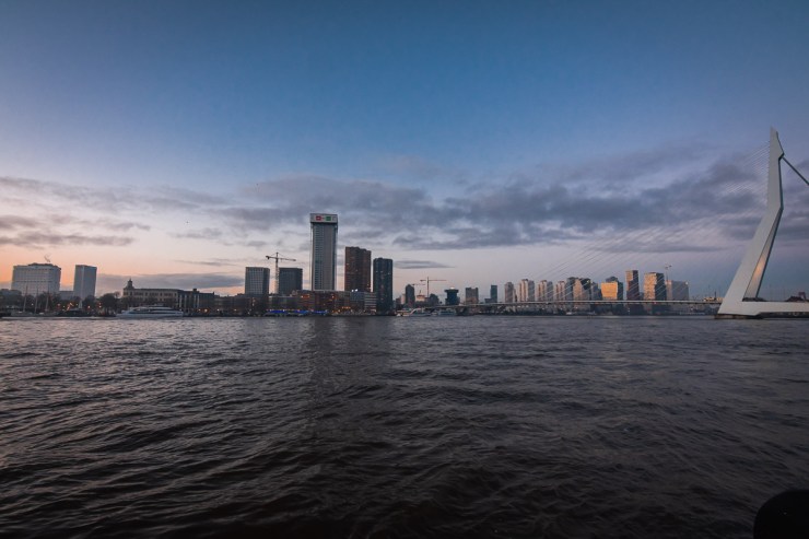 Le soleil se couche donc je vais me balader sur le pont Erasme et j’admire la silhouette de la ville. Je longe l’eau et puis je rentre à mon auberge.