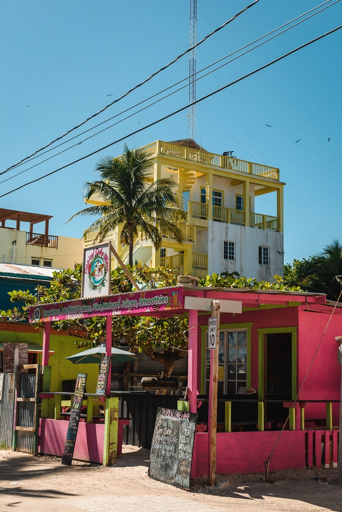 Il y a un peu moins de trois ans, j’avais du faire demi tour au Guatemala, un jour avant de passer la frontière, à cause de la pandémie. Mais cette fois-ci, c’est la bonne. On quitte le Mexique, non sans que l’immigration essaye de nous soutirer une taxe de touriste (le fait qu’on ait plus de cash nous sauve). L’entrée au Belize est très facile par contre. On remonte tous dans le van et on continue notre route jusque Belize city où on embarque directement sur un ferry pour nous rendre à Caye Caulker. On arrive juste après le coucher du soleil sur cette petite île. On dépose nos affaires à l’hôtel, on mange un burger servi avec des fruits et on se couche tôt.