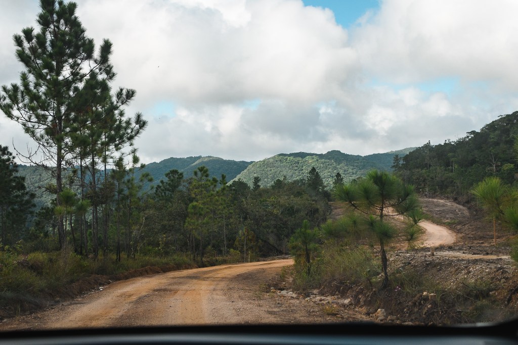 Le 13, on se réveille tôt pour rouler jusque Caracol. La route prend près de 2h30 simplement car elle est en très mauvais état. Heureusement qu’on peut compter sur les talents de conductrice de Lauranne. On passe d’abord par la région de Mountain Pine Ridge, où les pins sont prédominants, avant de redescendre vers la jungle. On doit passer un check point où l’armée prend nos informations. Si nous ne repassons pas dans l’autre sens, ils viendront à notre recherche.