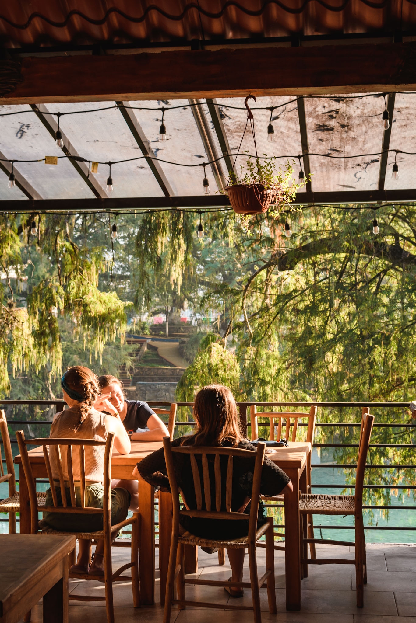 Le lendemain matin, 3 janvier, c’est un petit déjeuner (oeuf et beans) au bord de l’eau turquoise de la rivière longeant notre hotel, qui nous attend.
