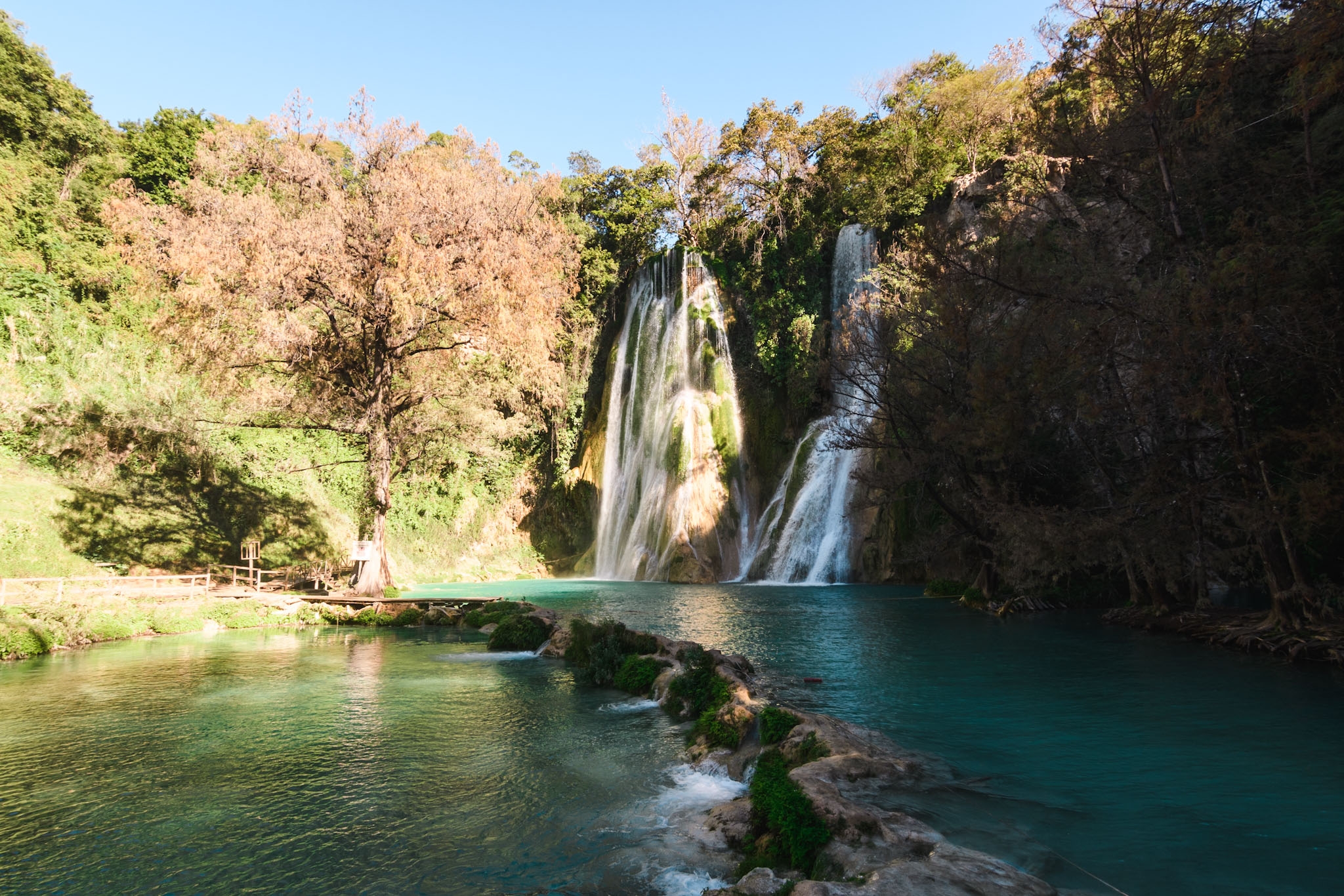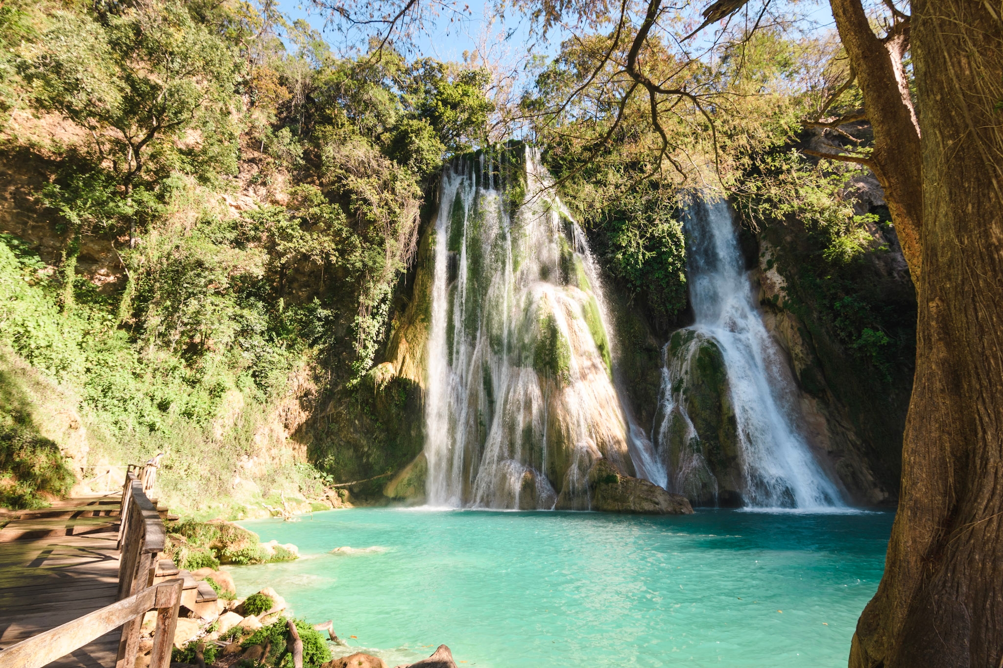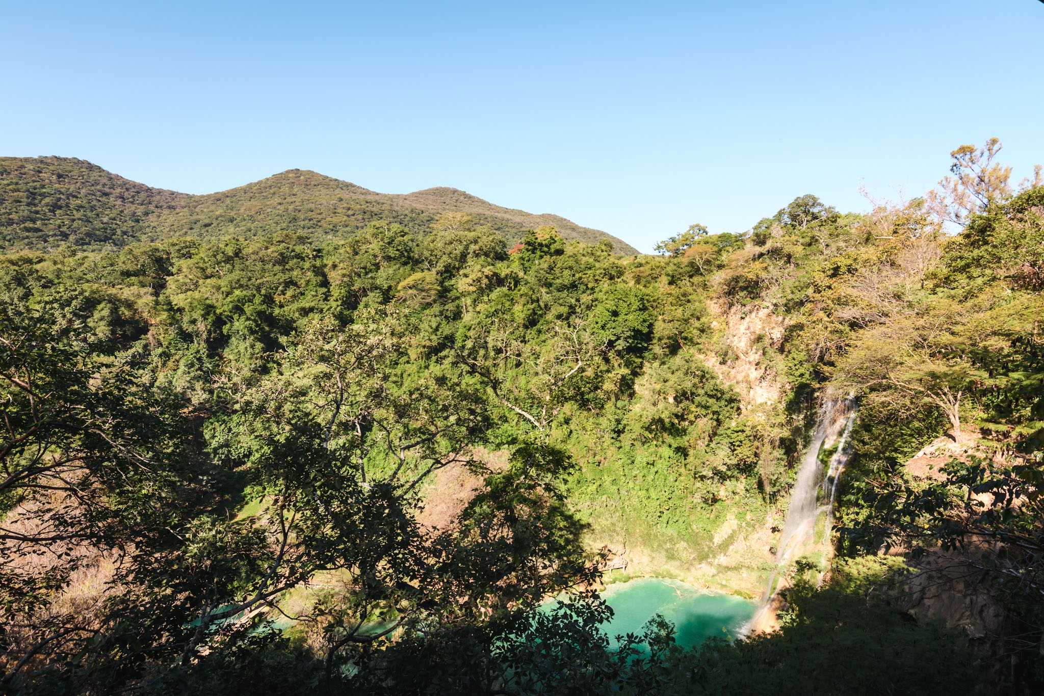 Après un sandwich avocat dans la voiture, on finit par arriver en milieu d’après midi à notre airbnb/hôtel pour la nuit. Il est situé au bord d’une rivière dont l’eau est turquoise. On reprend vite la voiture pour aller jusqu’à un mirador de notre première cascade ( El Meco) et un peu plus loin, nager dans l’eau de la cascade El salto de agua. La cascade n’est néanmoins pas présente en hiver, la centrale hydraulique voisine detourne l’eau temporairement. La vue reste belle et il n’y a pas grand monde.