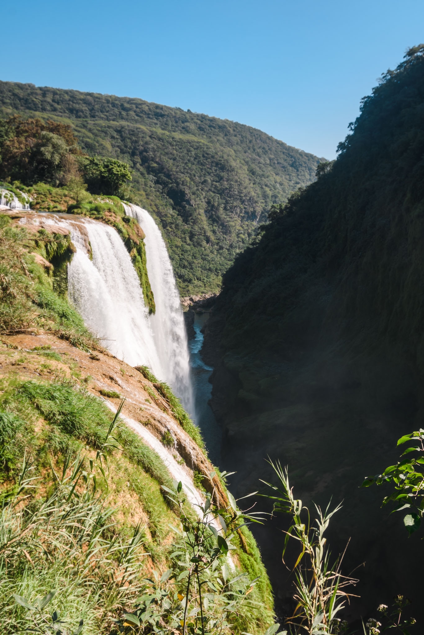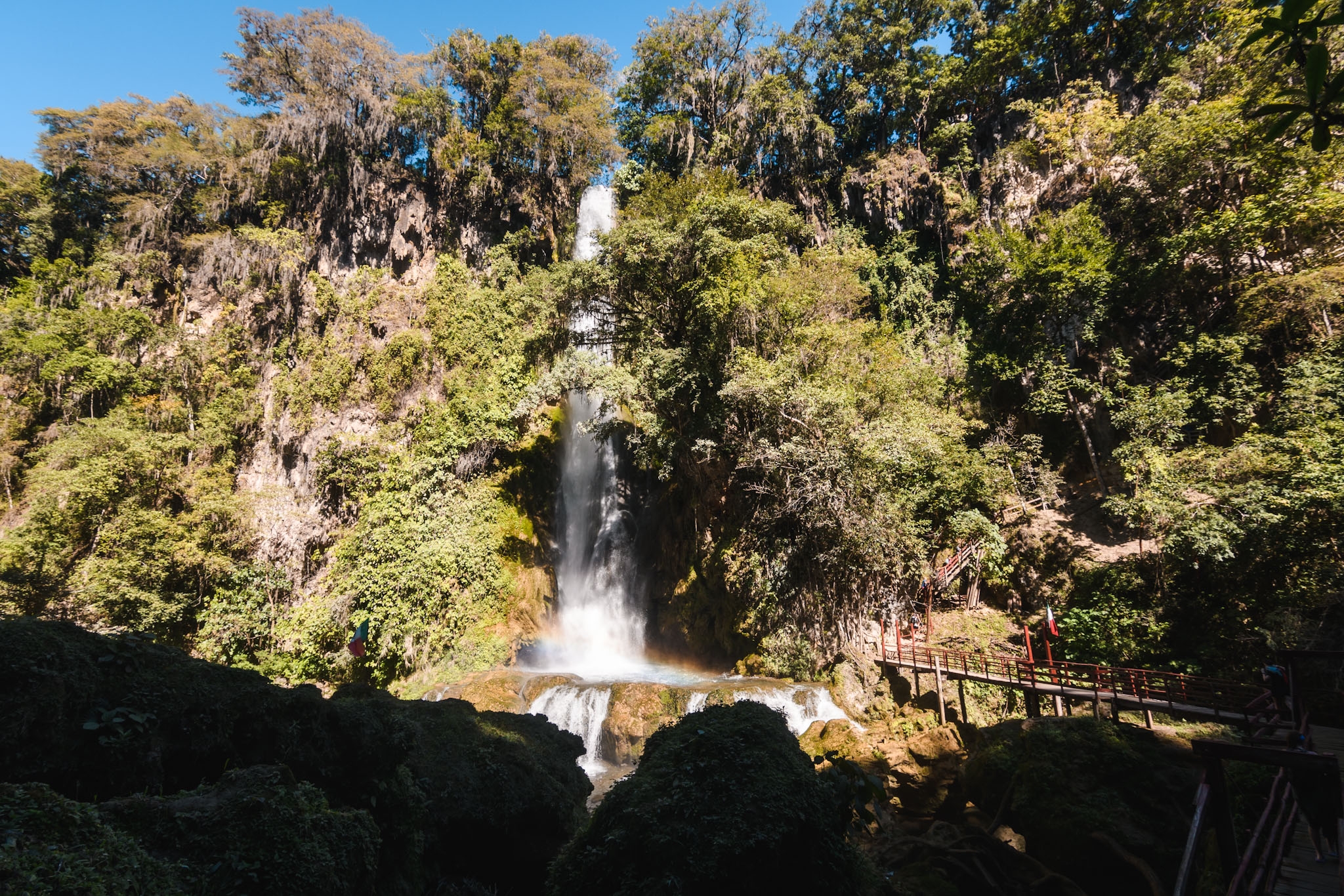 Le lendemain, on part pour la dernière cascade de notre roadtrip, c’est la plus haute de la région avec ses 105m de haut. On est obligée d’avoir un guide. On le suit d’abord pendant 30 minutes sur une route pas très praticable mais en roulant doucement on y arrive. On marche ensuite une vingtaine de minutes avant d’arriver au sommet de la cascade. Puis, on descend via des escaliers assez pentus. En bas, on nage (pas au pied de la cascade) pour se rafraîchir. On remonte ensuite et après un dernier sandwich avocat, on reprend la route jusque Guanajuato, avec une petite étape au Mc do. On arrivera à notre auberge seulement vers 22h et on file au lit.