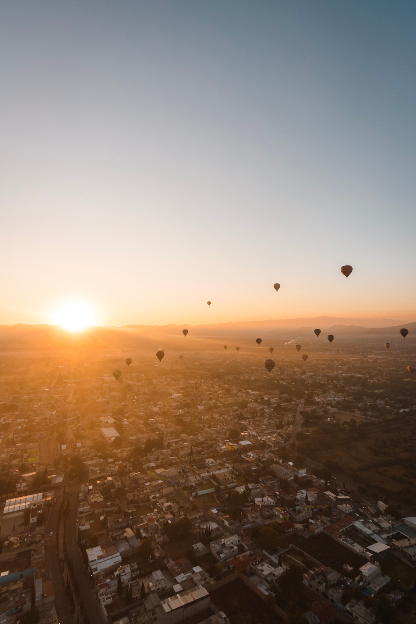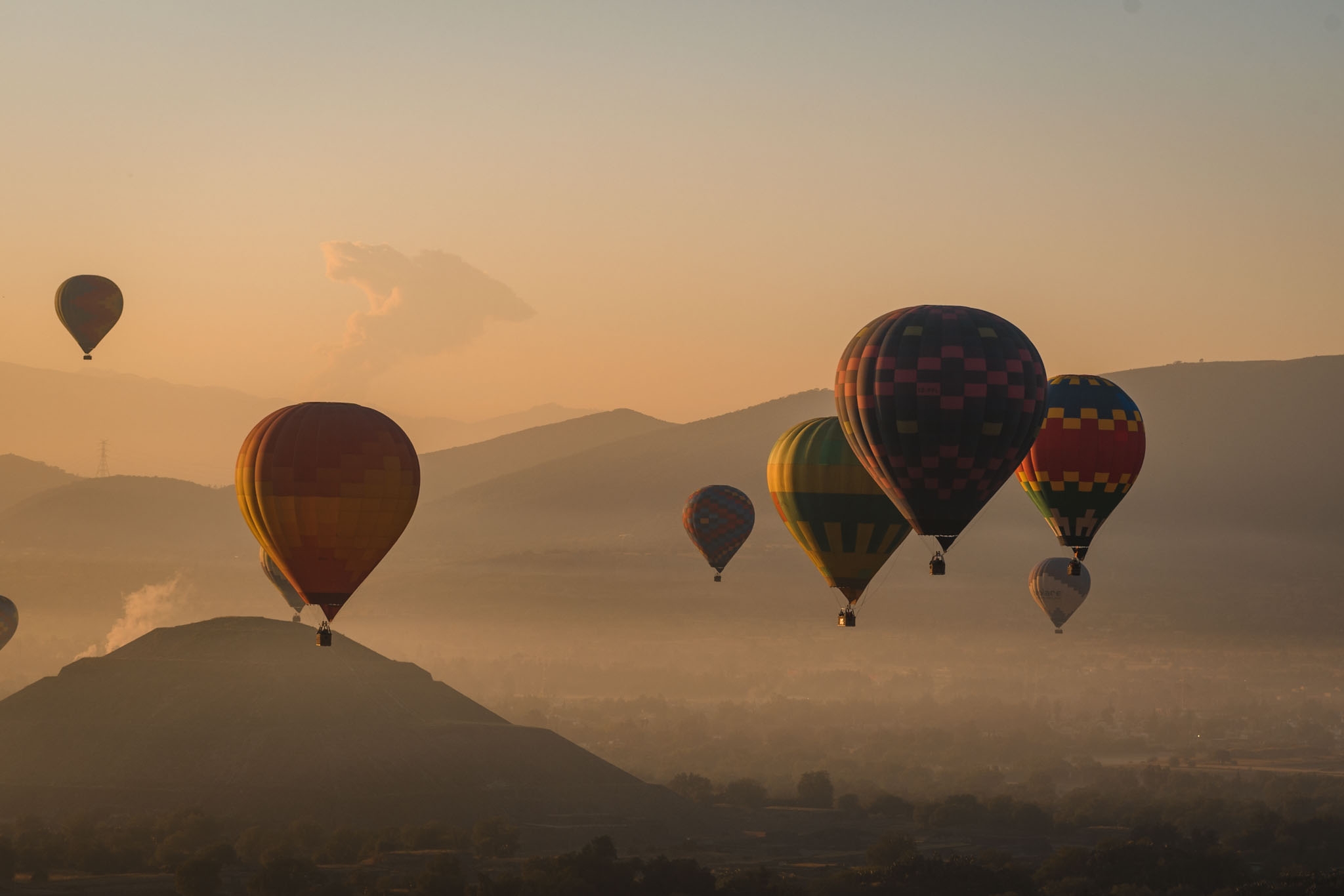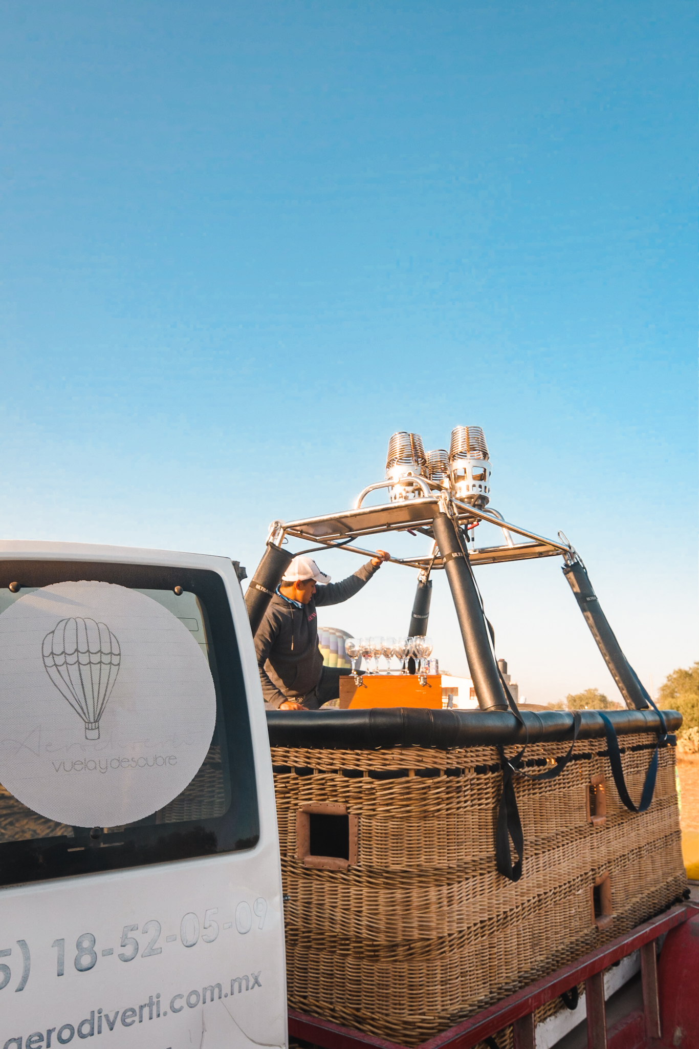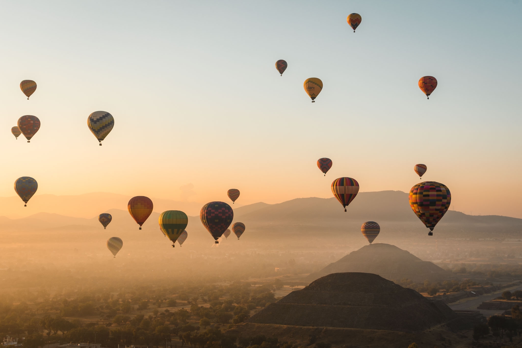En effet, on a décidé de faire un tour en montgolfière au lever du soleil au dessus des temples de tehotihuacan. Le réveil a 4h du matin est difficile. On va en uber jusqu’au point de rendez-vous où on attend car on est arrivées trop tôt (on voulait être sûres d’être là à temps). La ville de México étant située à plus de 2000m d’altitude, les nuits sont froides et on grelotte. Mais ils finissent par arriver et on se réchauffe sous un champignon. On nous explique les règles de sécurité et on place nos affaires dans des casiers. Quand le soleil commence à se lever, on quitte le bâtiment vers le champ derrière et la on découvre toutes les montgolfières qui sont en train d’être préparées. Après quelques photos, on monte dans la nacelle et alors que les rayons du soleil comment à nous réchauffer, on s’envole.