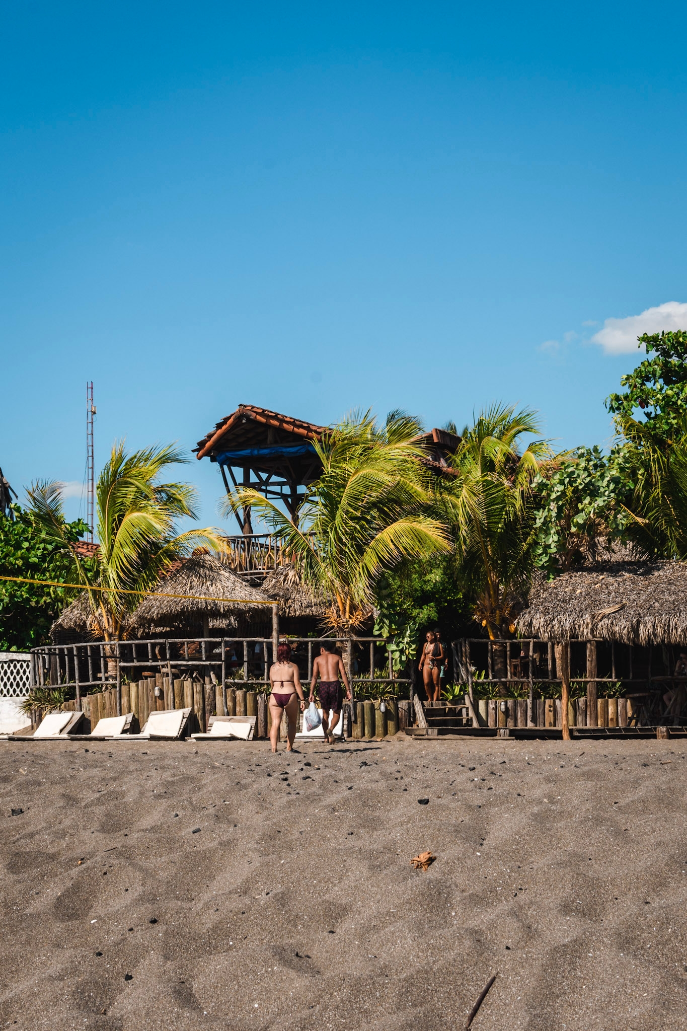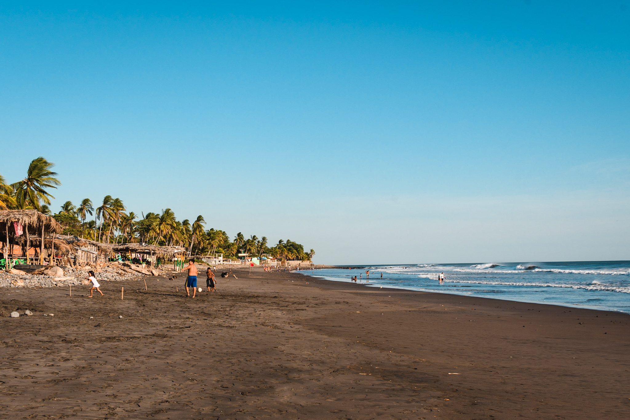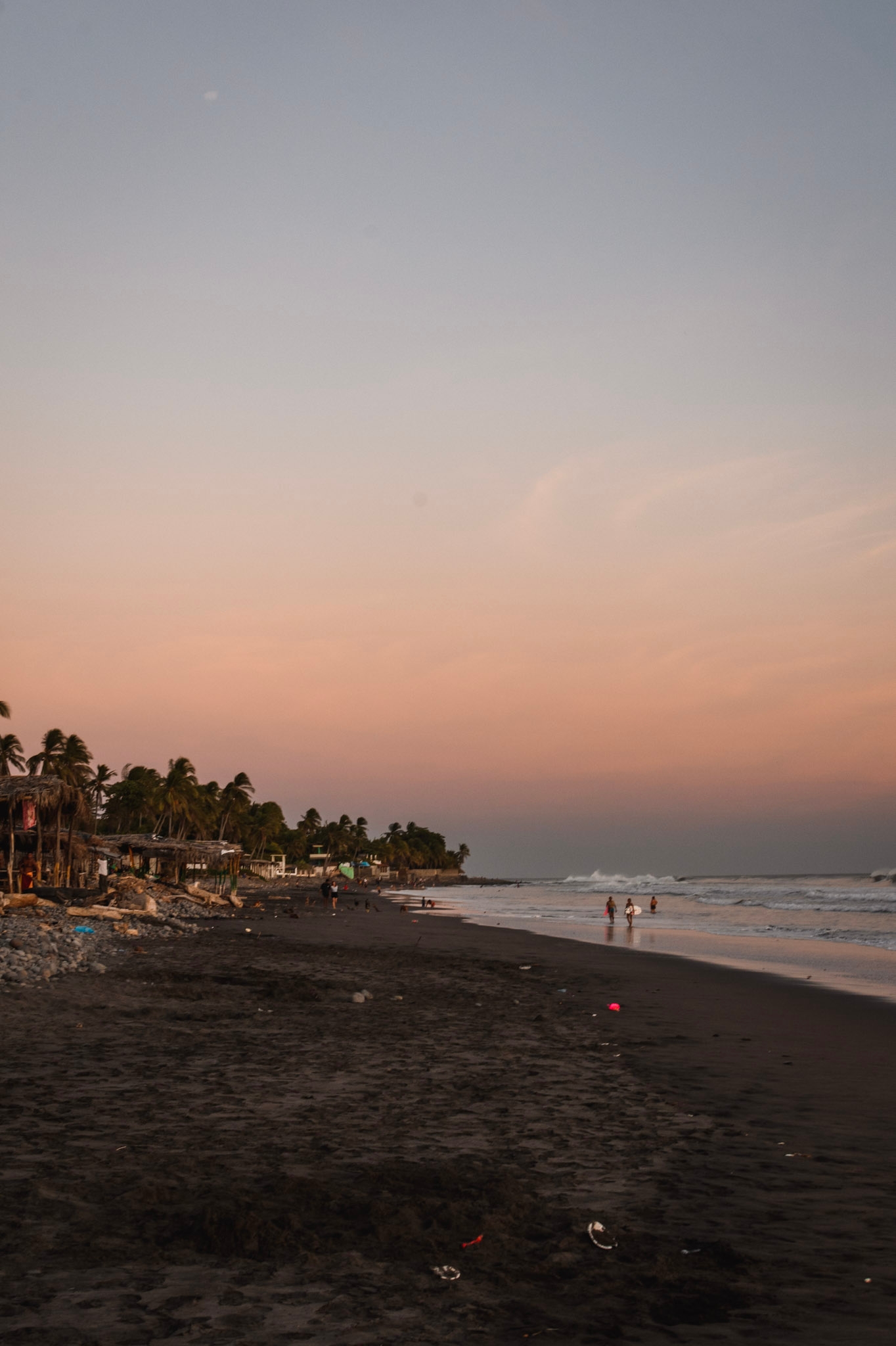 Par le hublot de l’autre côté de l’avion, j’aperçois quelques volcans. Pas de doute, je suis bien de retour au El Salvador. Je passe l’immigration et commande un uber pour aller prendre un bus. Je retrouve la gentillesse des locaux. Je ne sais pas d’où part exactement le bus mais mon chauffeur me dépose la où il faut, demande quand part le prochain bus, où il vaut mieux attendre et m’indique où je peux acheter quelque chose pour faire de la monnaie. 15 minutes plus tard, je suis de retour dans un chicken bus. C’est sûr qu’on est loin du confort des bus de luxe qu’on a pris au Mexique mais l’ambiance particulière de ce transport m’avait manqué. Un peu moins d’une heure plus tard j’arrive à La Libertad et j’installe mes affaires dans une petite auberge au bord de la plage. C’est assez rudimentaire mais c’est parfait pour une nuit. Je vais me rafraîchir dans la mer et passe le reste de l’après midi à papoter avec d’autres voyageurs avant de regarder le coucher du soleil. Le soir, je mange des pupusas avant d’aller me coucher avec le son des vagues.