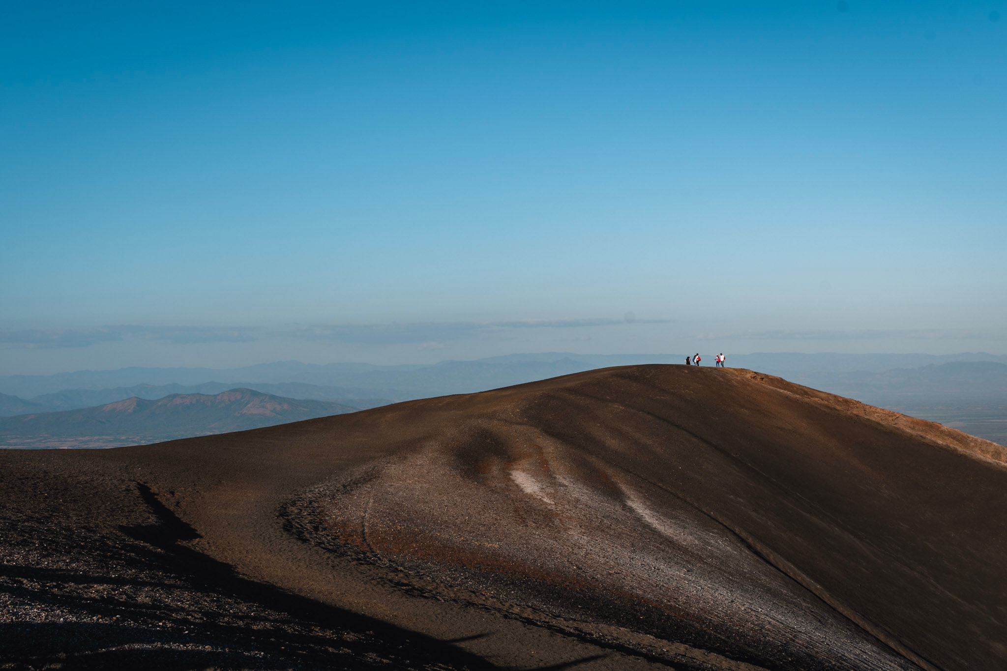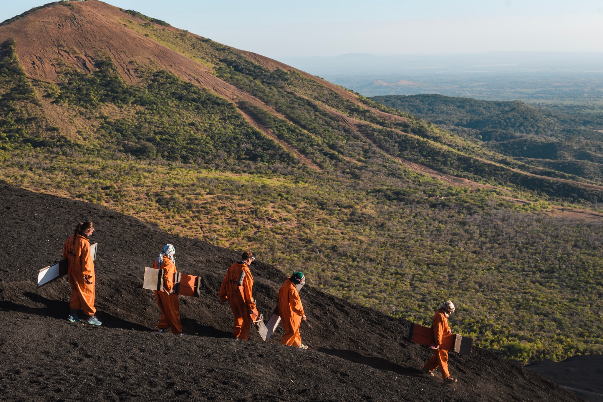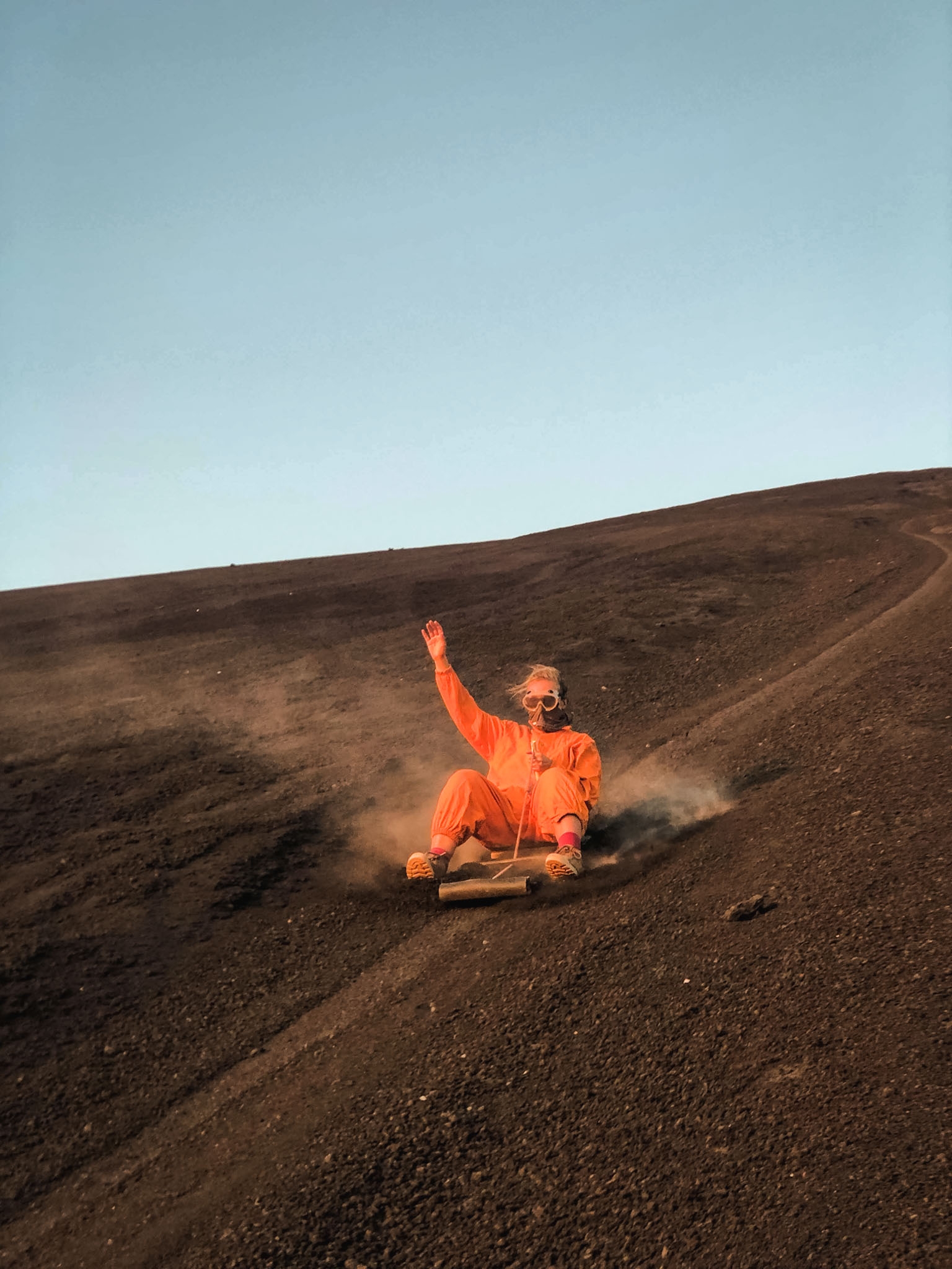 Pendant une heure, on grimpe le volcan Cerro Negro, le plus actif et la plus jeune du Nicaragua (le deuxième plus jeune au monde). En haut, on s’équipe, on fait quelques photos et on se prépare pour la descente. C’est un des seuls endroits au monde où on peut faire de la luge sur un volcan. C’est un australien qui a eu l’idée de descendre le volcan et il a testé plusieurs méthodes pour le faire, notamment une porte de frigo. Ce sont maintenant des planches de bois équipées de métal et de formica qui sont utilisées. Le record de vitesse est de plus de 100km/h.