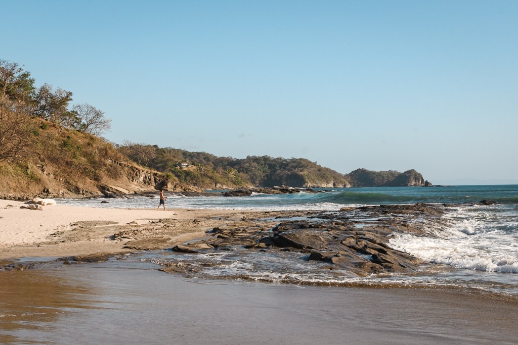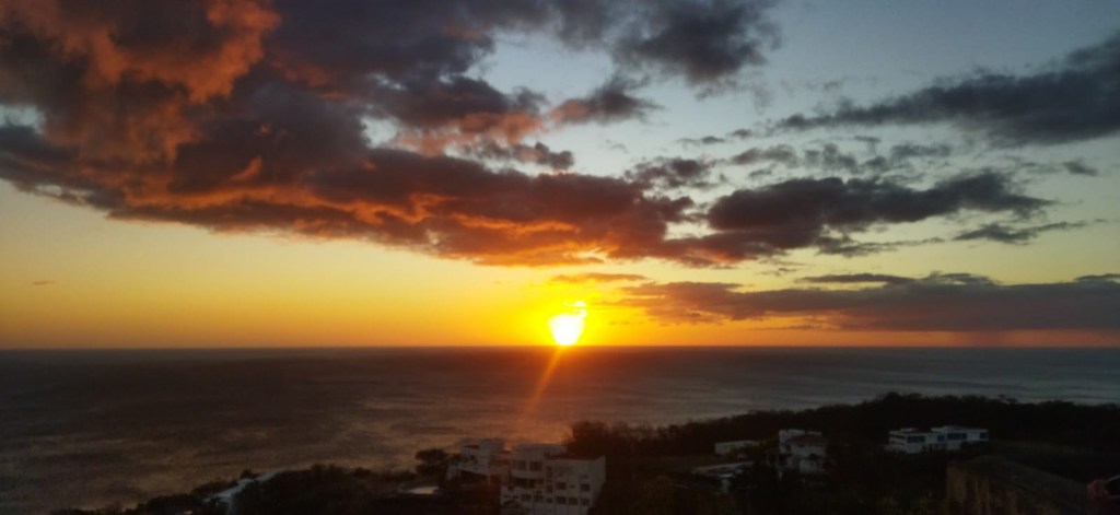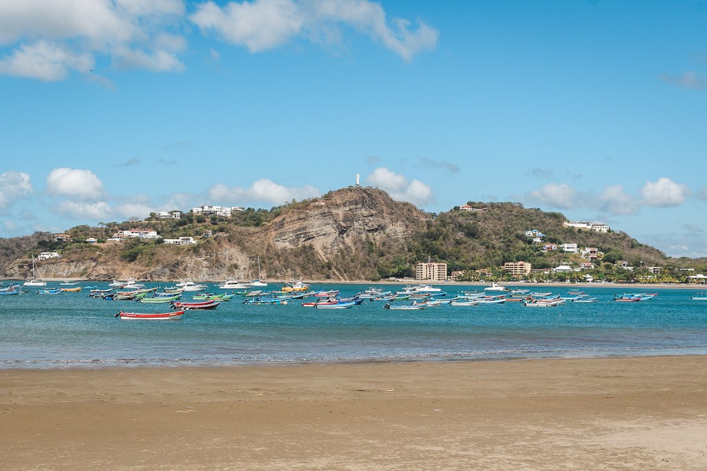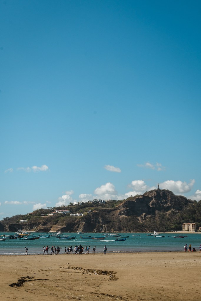 Vendredi matin, on profite d’une boulangerie française pour s’acheter des petits pains au chocolat (enfin quelque chose qui y ressemble) ainsi qu’une baguette (une vraie) avant de parcourir les quelques rues de la ville. On trouve une fromagerie et on s’achète un nicamenbert. On prend ensuite une navette pour la playa hermosa. San juan del sur est situé au bord de la mer mais la plage principale n’est pas des plus intéressantes donc il y a un système de navette pour se rendre aux plages voisines. Arrivés à la playa Hermosa, une grande et longue plage, on va nager mais on se rend vite compte que l’eau est bien fraîche, surtout comparé aux caraïbes. On passe la journée à jouer aux cartes, lire, nager et à midi on se fait un bon sandwich avec la baguette et le camembert, c’est succulent. En fin d’après midi, on est de retour à San Juan. Baba et moi grimpons jusqu’au Christ qui surplombent la baie pour le coucher du soleil pendant que Caro va courir.