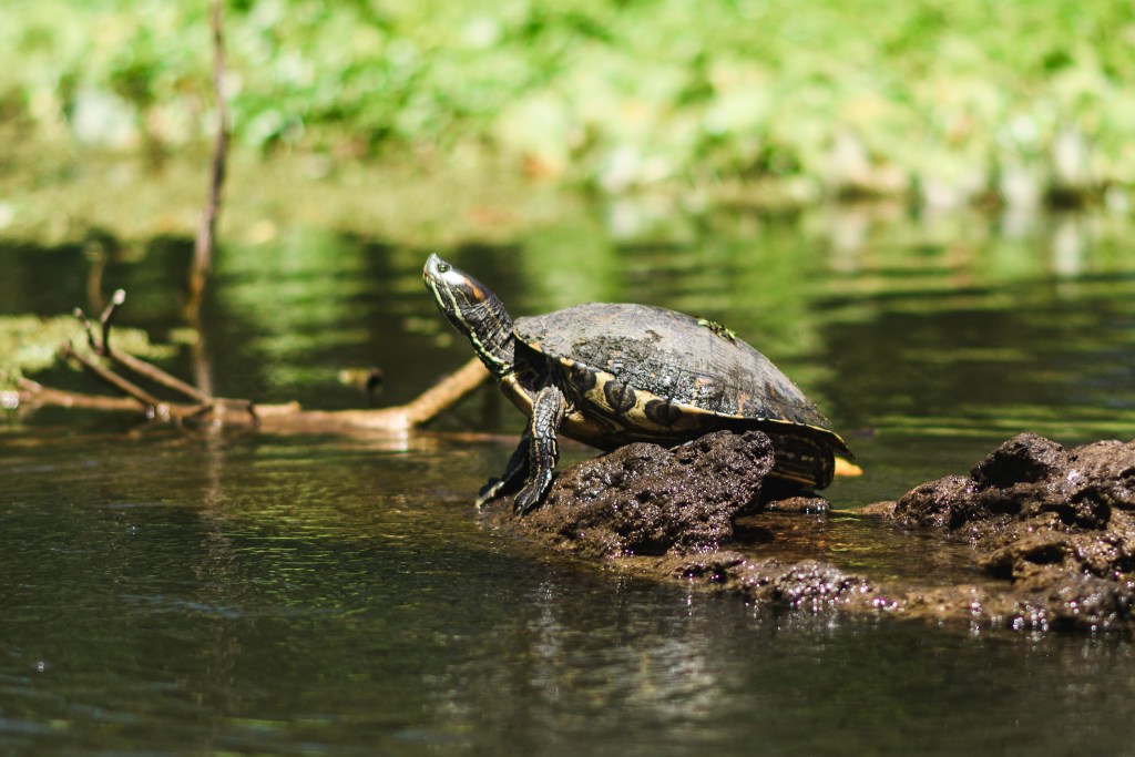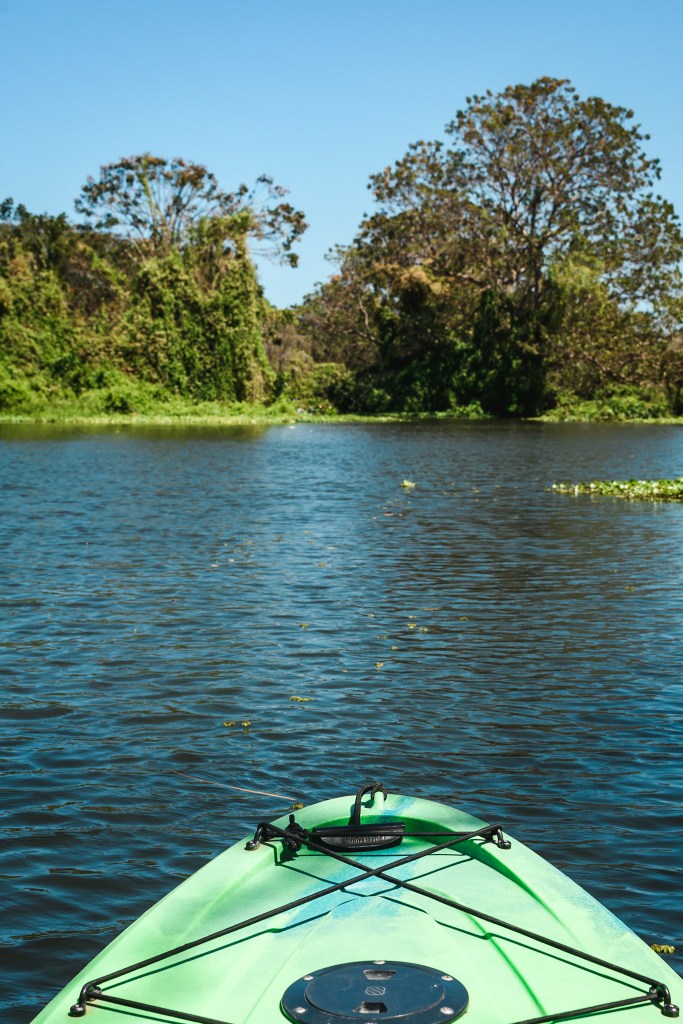 L’ile est grande et il n’y a pas beaucoup de bus. Pour se déplacer, la plupart des voyageurs louent des motos mais j’en ai déjà rencontré pas mal qui se sont blessés ici et ça ne me donne pas trop envie. Je décide de marcher jusqu’à une petite plage d’où je peux voir le volcan concepción. En chemin je fais du stop et un pickup m’amène rapidement à destination. A la plage j’apprécie la vue et puis je décide de louer un kayak pour explorer la rivière qui coule entre les deux volcans. J’ai d’abord l’occasion de voir le volcan maderas en m’éloignant de la rive et puis le long de la rivière je vois beaucoup d’oiseaux et des tortues. Il paraît qu’il y a des caimans mais ils se cachent bien.
