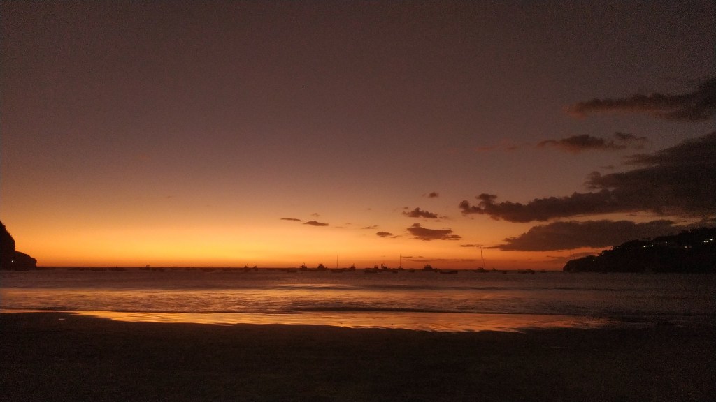 Samedi, on prend toutes les deux le ferry pour retourner à San Juan del Sur. J’aimerais faire quelques courses et une lessive avant de passer au costa rica le lendemain. C’est ma mission de l’aprem. Je retrouve par hasard deux filles rencontrées au El Salvador et on boit un verre ensemble. Je regarde ensuite le coucher du soleil avec Chloé avant de faire la noce (apparemment c’est comme ça qu’on dit faire la fête en Suisse).