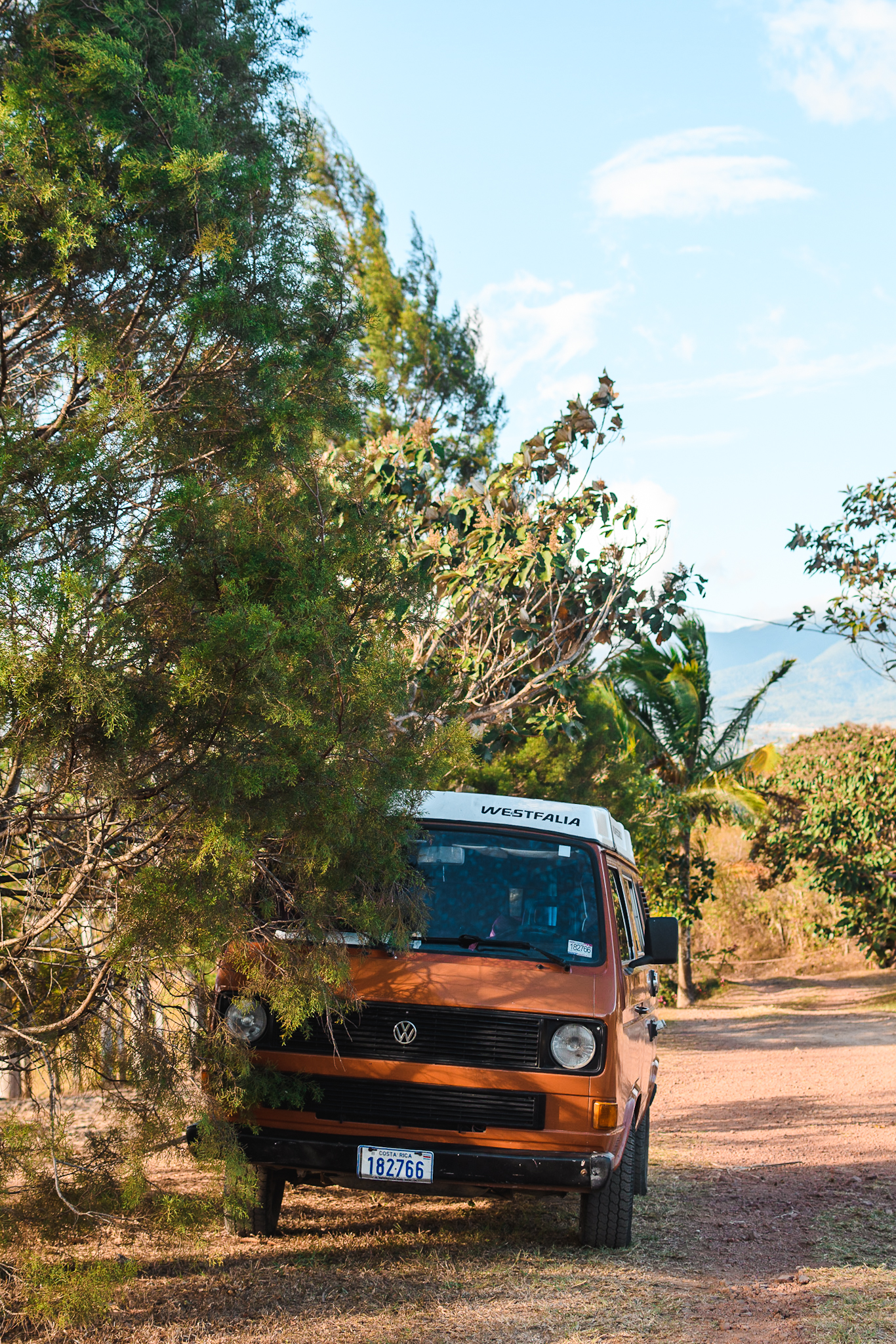 Au réveil, Lauranne et moi partons à la recherche d’aide. On croise un fermier qui nous conseille d’aller demander au laitier. Ce dernier nous indique qu’il sera la dans 1h, après la traite des vaches. Il est ponctuel et exactement une heure plus tard, à 7h30, il est la avec un ami. Sans trop de souci, il nous sort de la et amène le van jusqu’au sommet de la première pente. On monte ensuite dans son pick up pendant que son ami conduit le van encore un peu pour s’assurer qu’il puisse arriver au bout des autres montées. Tout roule et après un bout de gâteau au chocolat et un billet pour remercier nos nouveaux amis, on est de retour sur la route. On se souviendra de la gentillesse des habitants de Zarcero.