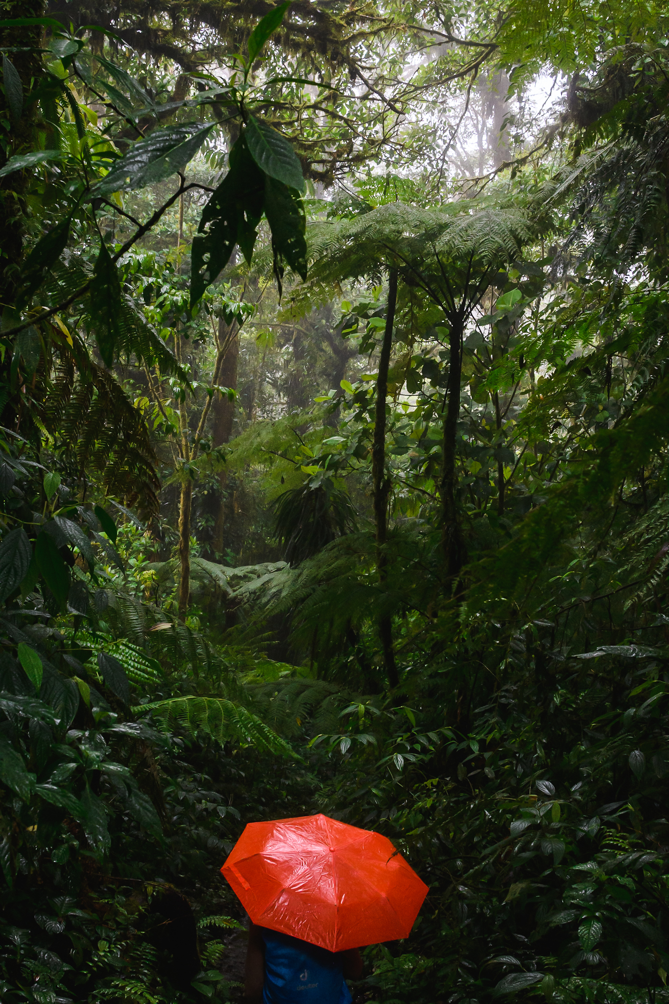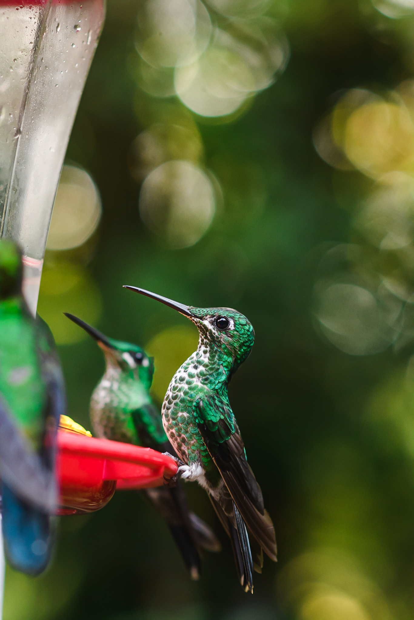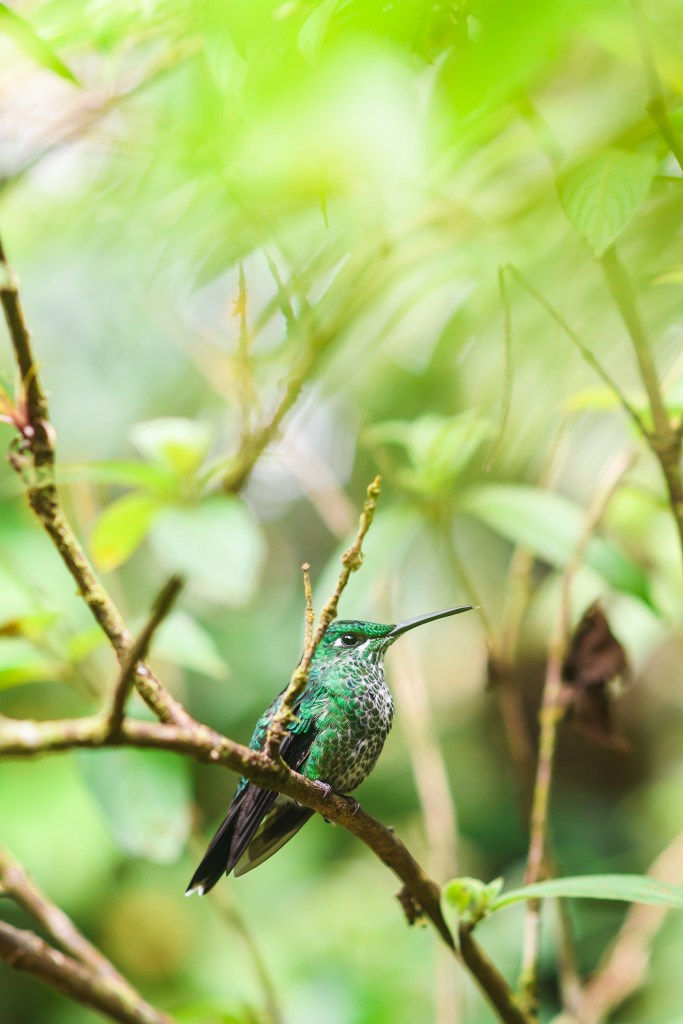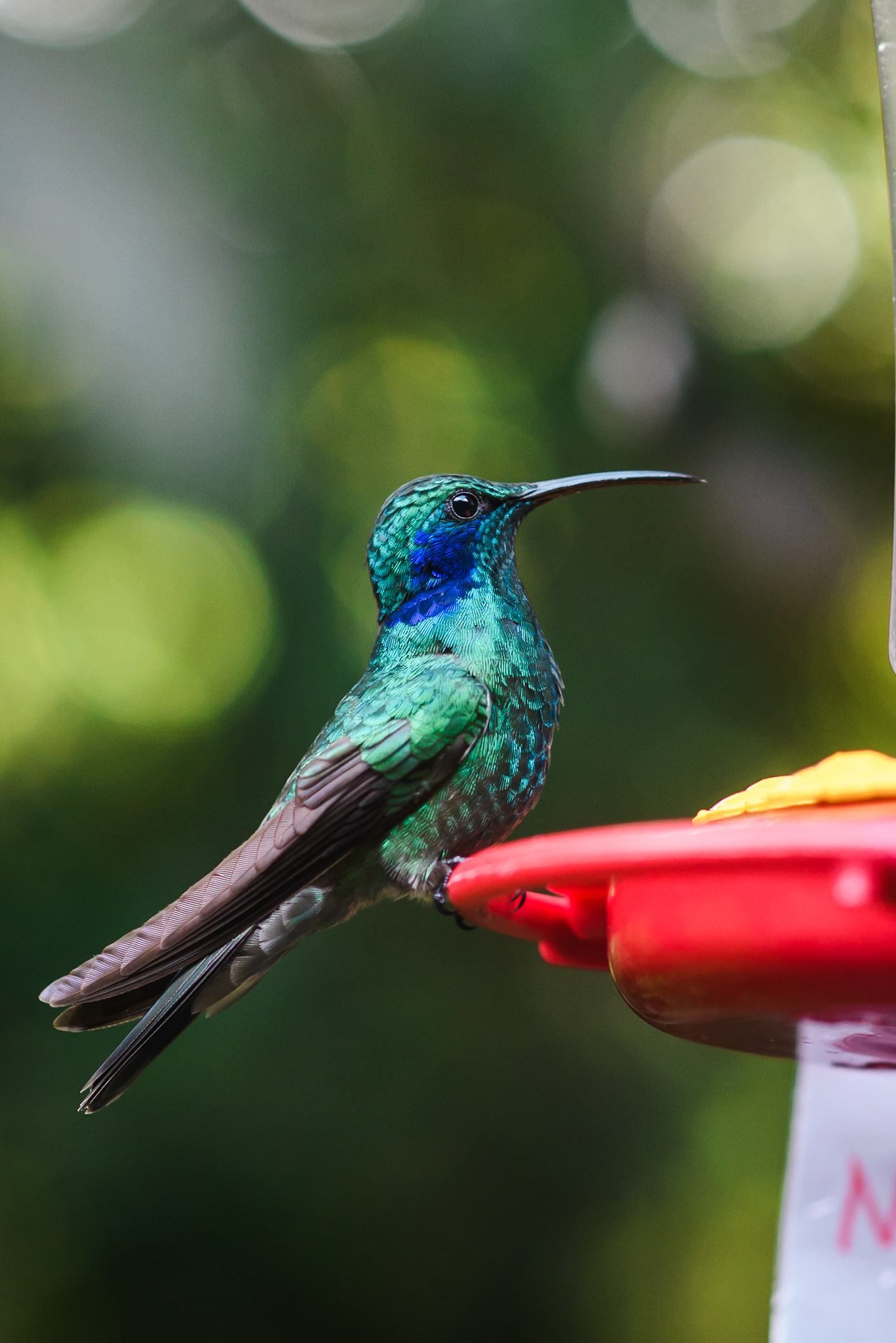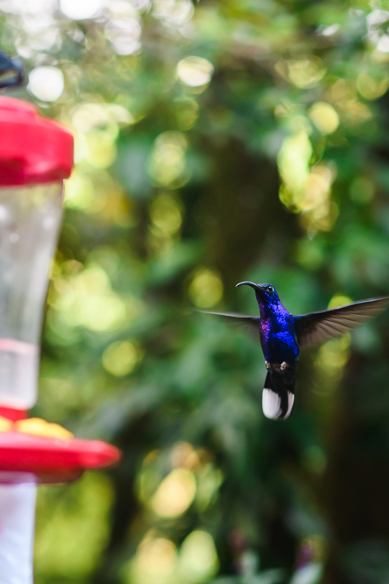 Après le lac , on commence à grimper vers les villes de Santa Elena et Monteverde qui sont les points de départs pour la visite des réserves naturelles homonymes. Celles ci abritent des forêts de nuages (cloudforest). On a encore le temps de visiter un arbre ficus qui fait un pont et le café colibri où des colibris de toutes les couleurs viennent s’abreuver. Deux activités gratuites, ce qui est rare au Costa Rica.