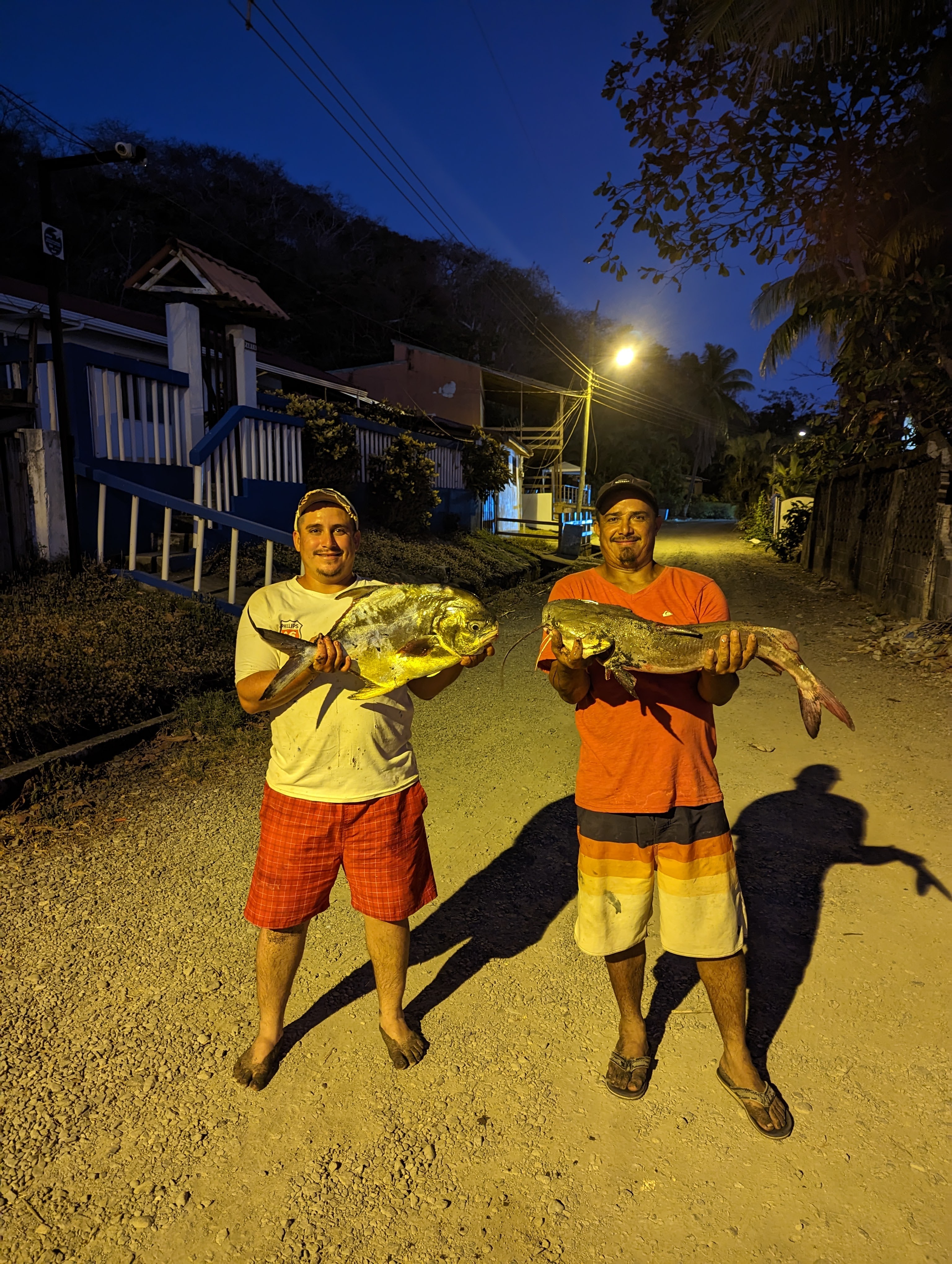 On est contentes de notre visite et après avoir quitté le parc, on roule jusqu’à la côte pour retrouver la chaleur. On se trouve un petit spot dodo de rêve, au bord de la plage. On se prépare un apéro tout en regardant le coucher du soleil. Un peu plus tard, des pêcheurs reviennent et ils posent avec leurs trouvailles : un poisson chat et une sorte de thon. Ils nous proposent de poser avec mais on vient de prendre une douche et on refuse poliment.