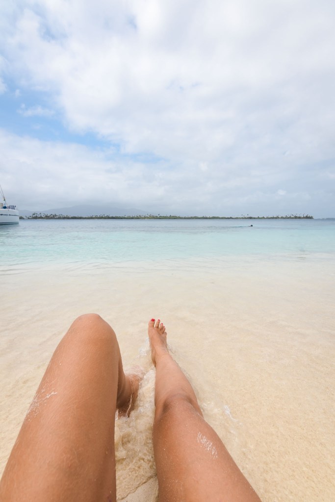 Le matin, on déjeune près de l’ile de Porvenir, où le capitaine apporte nos passeports pour avoir le tampon de sortie. On navigue ensuite encore deux heures avant d’arriver à notre ile pour la journée et la nuit. L’ile est quasi déserte, seulement habitée par quelques kunas, le peuple local. L’eau est turquoise, le sable est fin, les récifs sont remplis de poissons colorés… Serait on au paradis?