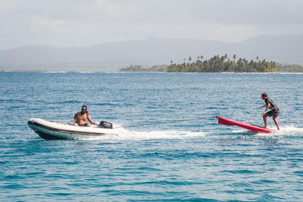 Le lendemain matin tôt, on navigue 1h vers une autre ile, inhabitée où on passe de nouveau la journée entre snorkeling (mais le courant est fort), bronzette, tournoi de freesby, surf sur le paddle avec le bateau, etc. Vers midi, trois dauphins viennent nous rendre visiter ainsi que quelques requins nourrices. Si on s’emerveillait déjà face à la beauté de l’île précédente, on est bouche bée en visitant celle de la journée. Les images parleront plus que les mots.