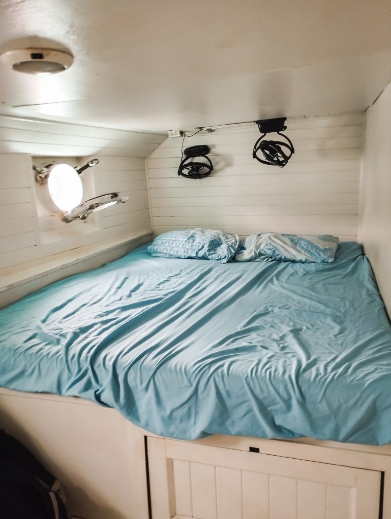 On rencontre les autres voyageurs avec qui on partagera le bateau. Il y a 8 anglais, trois autrichiens, deux néo-zelandais, une française, une suisse, un allemand et une canadienne, tous dans les 20-30 ans. On dépose nos affaires, on confie nos passeport au staff et on va luncher, tout en profitant des derniers moments de connexion. Les lits sont attribués et Thib et moi avons la meilleur chambre et le plus grand lit (parce qu’on accepte de dormir à deux mais qu’on est pas en couple).